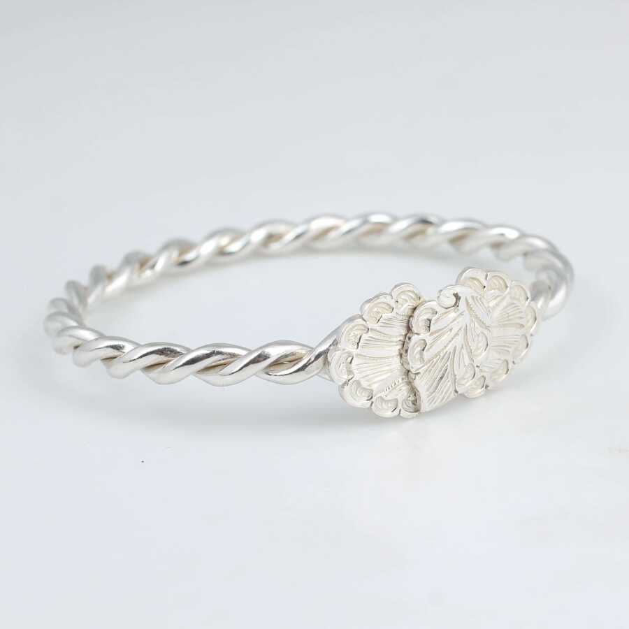 Bilezik 925 ayar gümüşten imal edilmiştir. Yaprak kaşlı model bilezik 5,3 cm çapındadır. Bileziğin kaşı 2,9 cm'ye 1,5 cm boyutlarındadır. İki tel Erzurum burma bilezik - gram ağırlığındadır. Bilezik el işçiliği ile üretildiği için gramlarda değişiklik olabilmektedir. Ağırlığı gramdır.