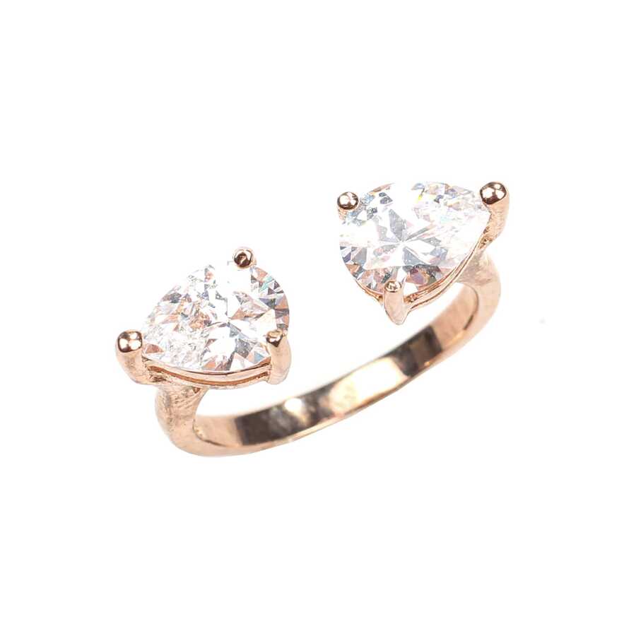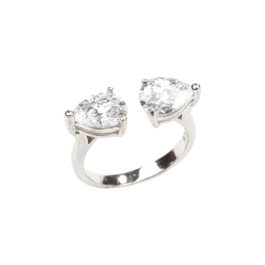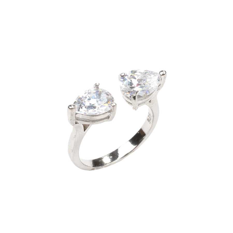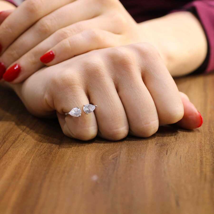 925 Ayar Gümüş Çiftli Damla Taşlı Yüzük