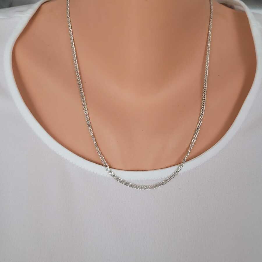 Gümüş kolye 925 ayar gümüşten yapılmıştır. Curb model zincir kolye 46 cm uzunluğundadır. Kolye taşsızdır. Ağırlığı 5,61 gramdır.