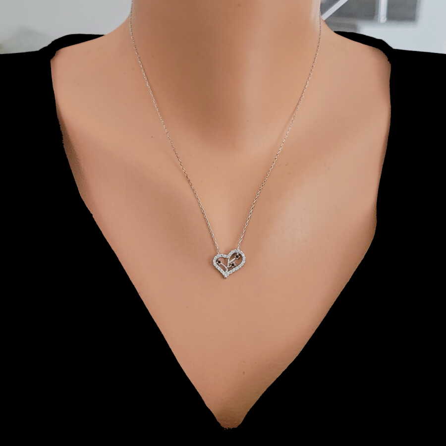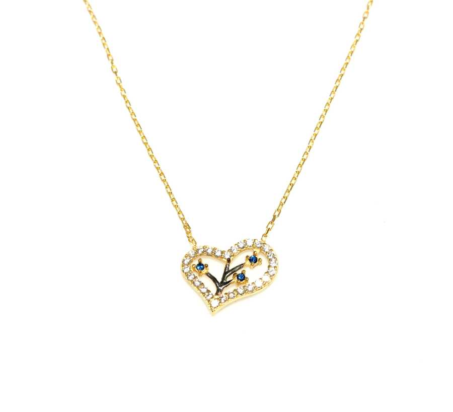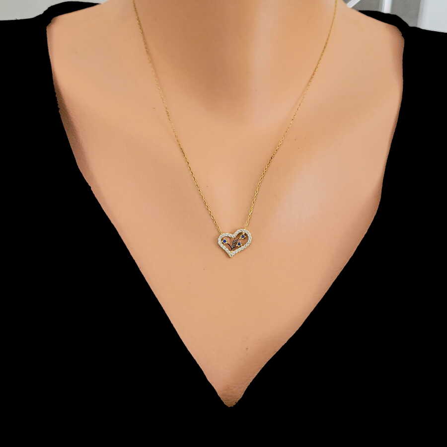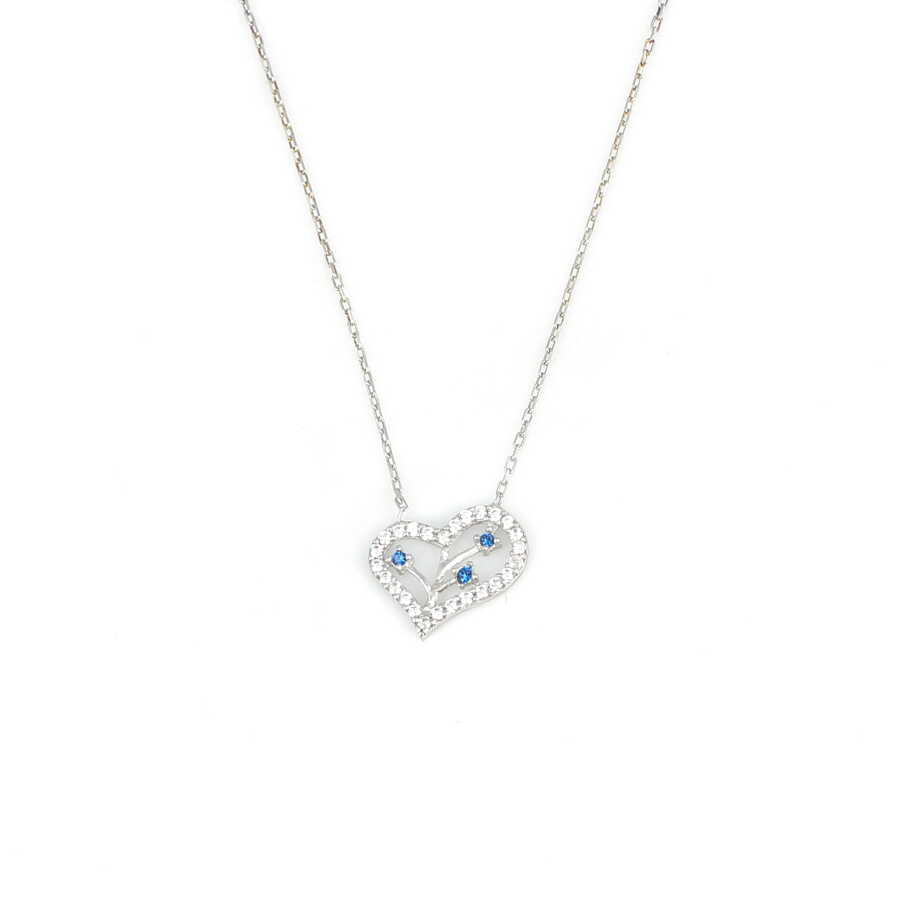 Gelince Haber Ver Zarafeti ve anlamı bir araya getiren bu özel tasarım 925 ayar gümüş kalp kolye, çevresini saran ışıltılı beyaz taşlar ve iç kısmındaki mavi taş detaylarıyla dikkat çeker. Kalp formu sevgi ve bağlılığı simgelerken, mavi taşlar tasarıma ferah ve zarif bir dokunuş katar.