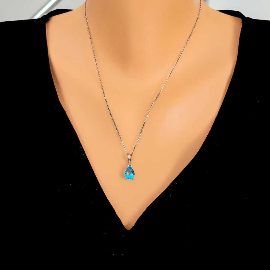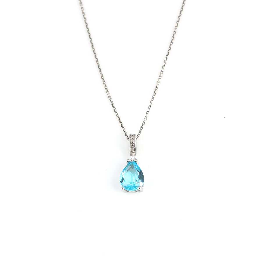 925 Ayar Gümüş Damla Akuamarin Taşlı Kolye