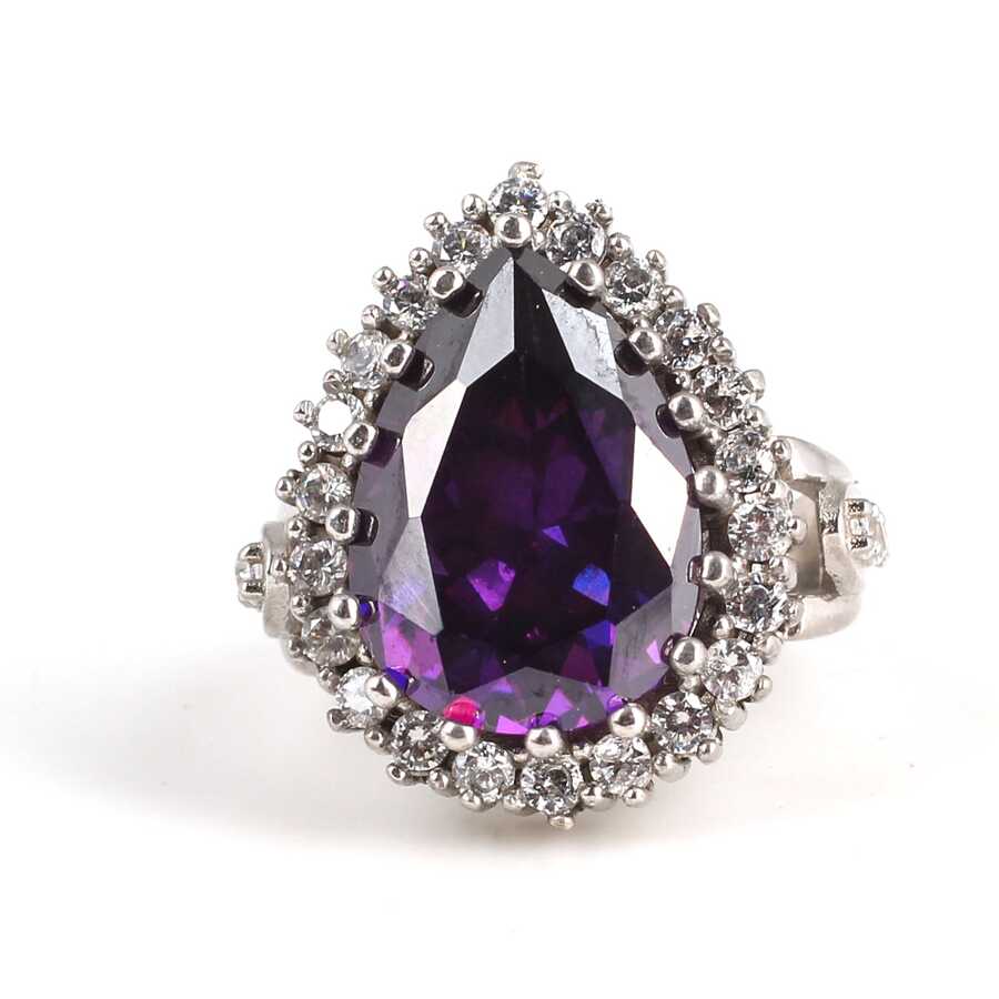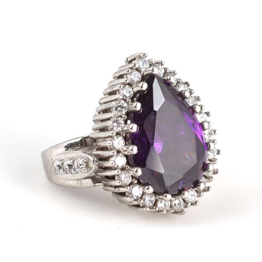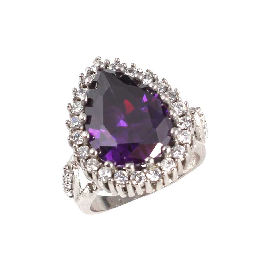 925 Ayar Gümüş Damla Ametist Anturaj Yüzük