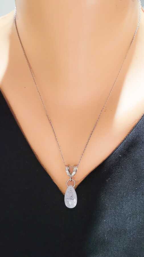 925 Ayar Gümüş Damla Aytaşı Kolye