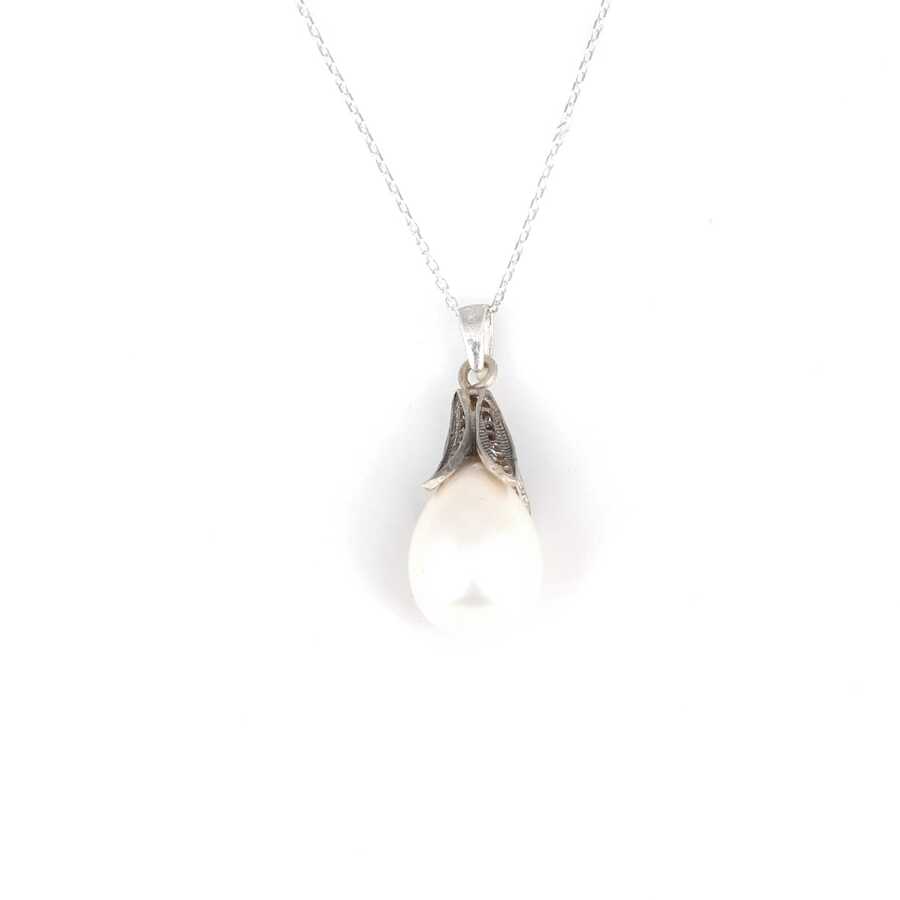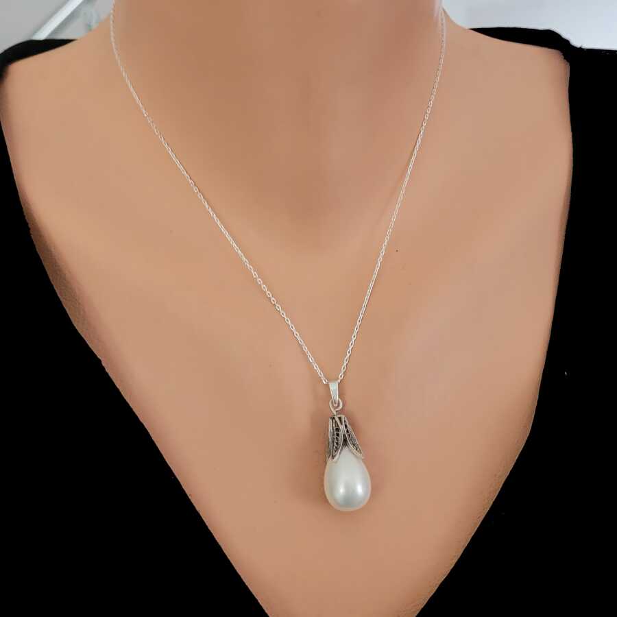 Gümüş kolye 925 ayar gümüşten yapılmıştır. Telkari Tepelik kolye tepeliği dahil 3,1 cm'ye 1,1 cm boyutlarındadır. Kolye 45 cm uzunluğundadır. Kolye inci taşlıdır. Ağırlığı 5,88 gramdır.
