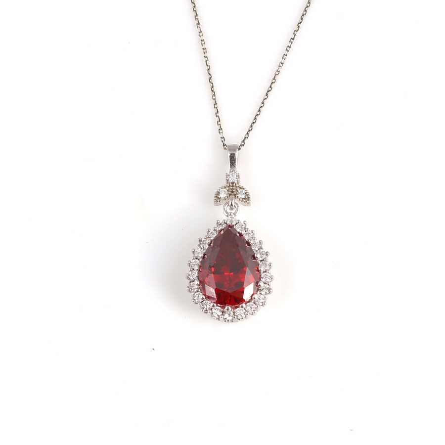 925 Ayar Gümüş Damla Garnet Taşlı Anturaj Kolye