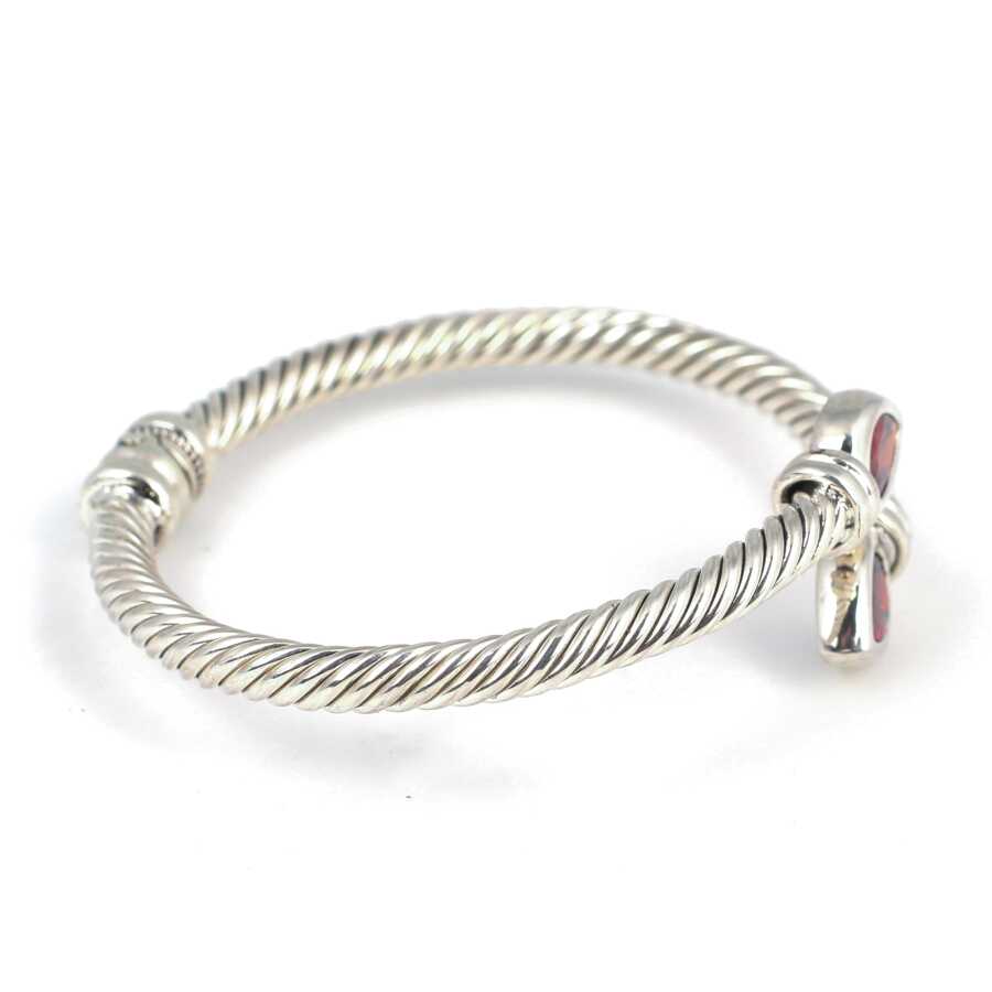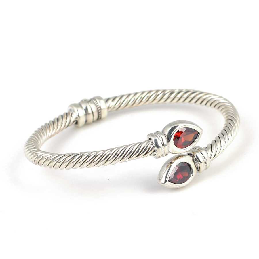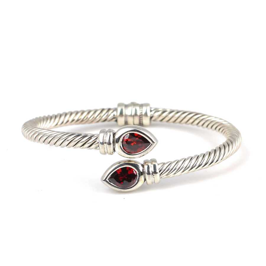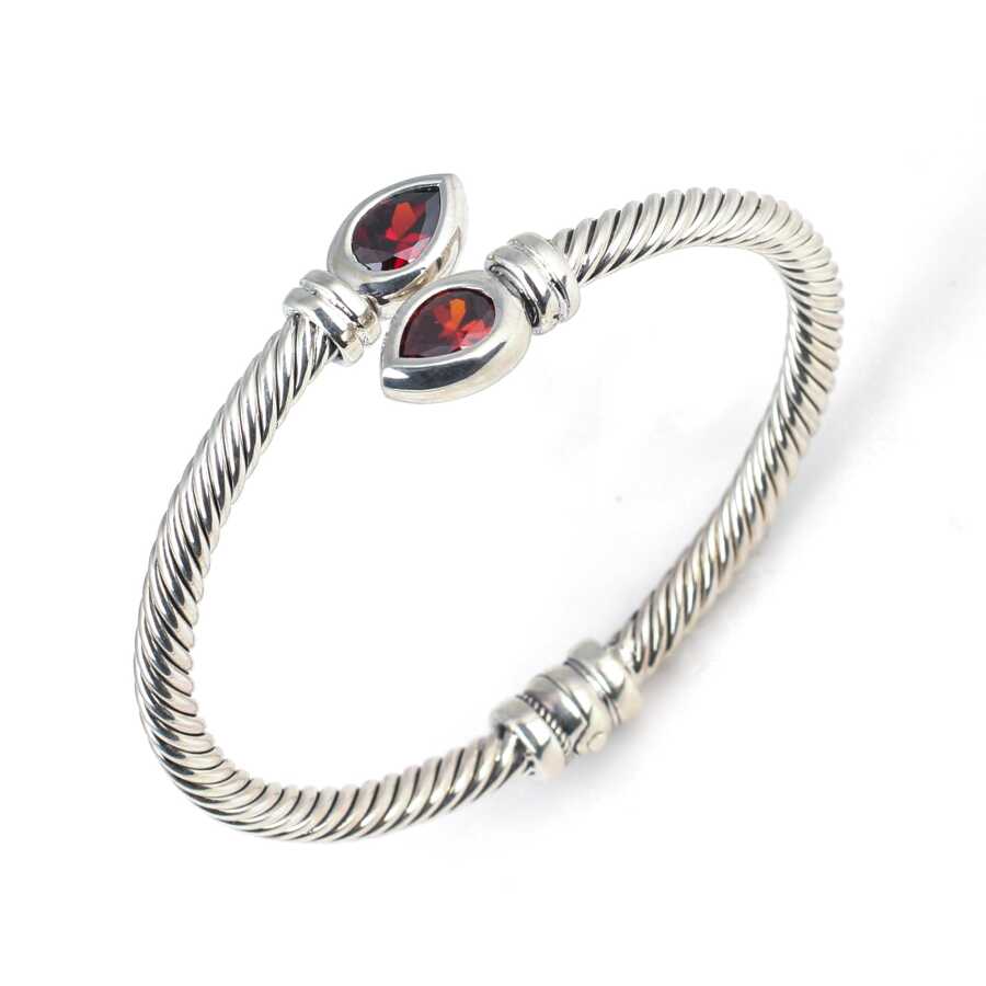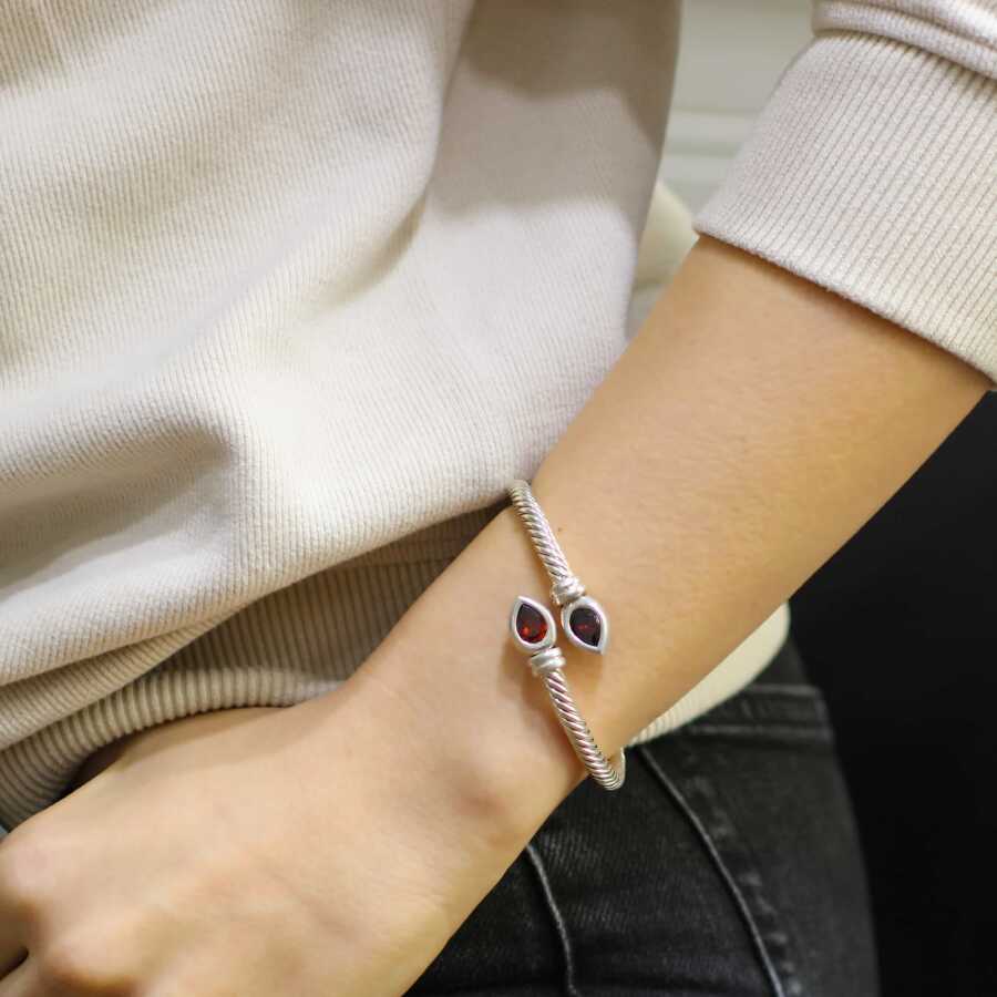 Bilezik 925 ayar gümüşten imal edilmiştir. 6 tel burgu bilezik 5,9 cm çapındadır. Bileziğin üst kısmı 0,9 cm genişliğindedir. Bilezik damla garnet taşlıdır. Bilezik Yaylıdır.Ağırlığı 26,75 gramdır.