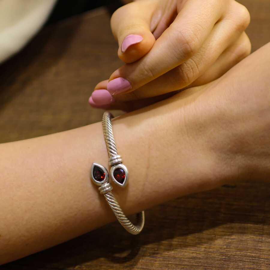 925 Ayar Gümüş Damla Garnet Taşlı Burgu Kol Erkek Bileziği
