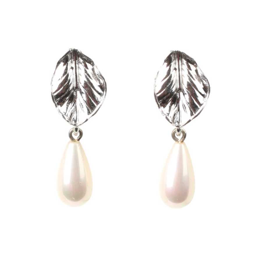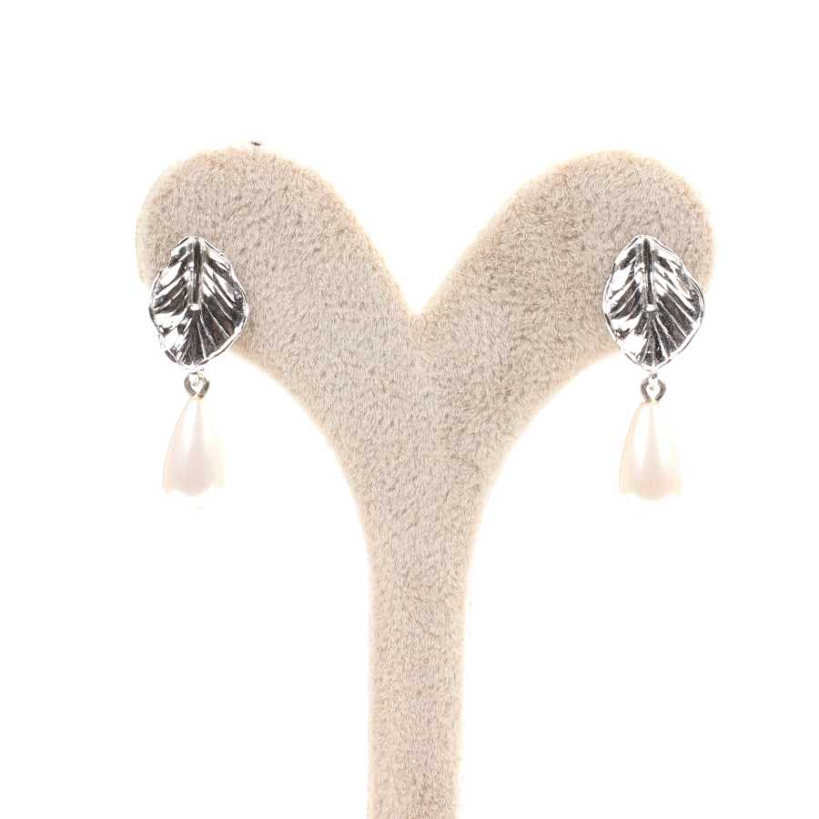 Gümüş küpe 925 ayar gümüşten yapılmıştır. Yaprak şeklinde kıskaçlı küpe 1,1 cm'ye 2,8 cm boyutlarındadır. Küpe inci taşlıdır. Ağırlığı 4,88 gramdır.