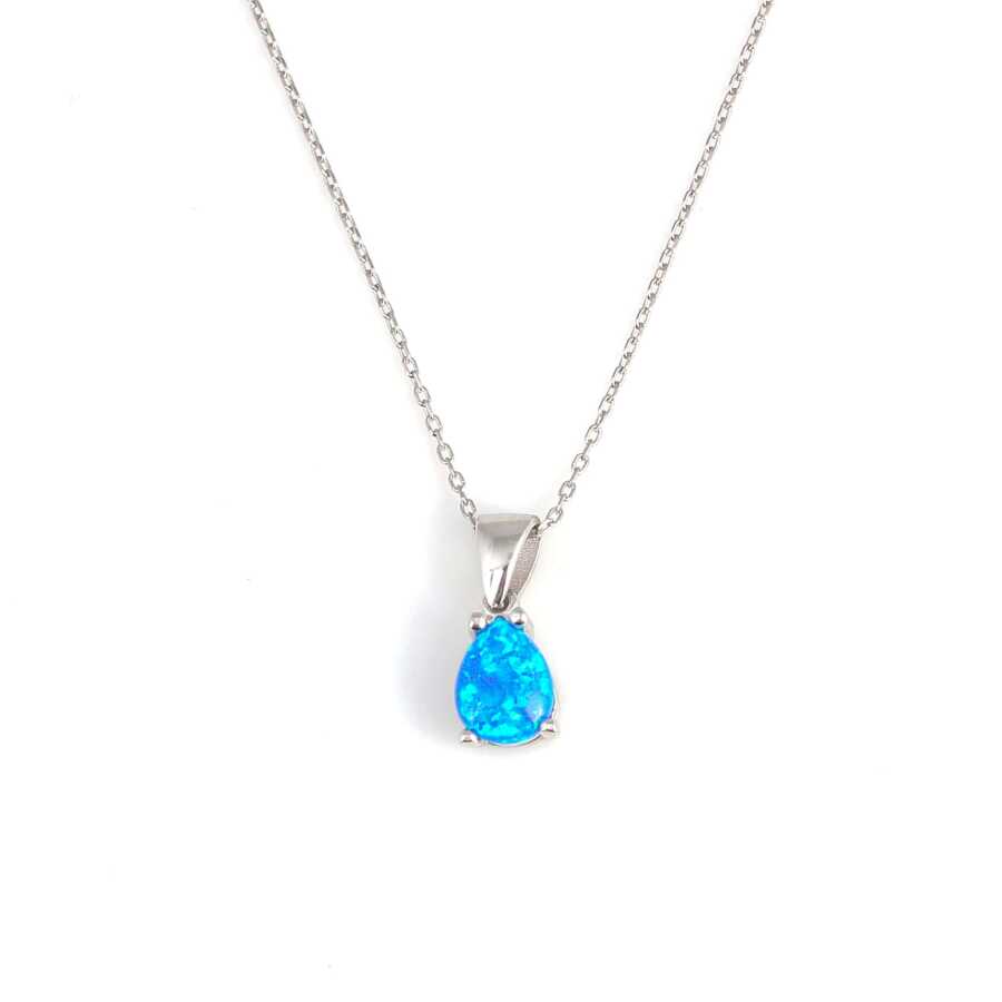 925 Ayar Gümüş Damla Mavi Opal Taşlı Kolye