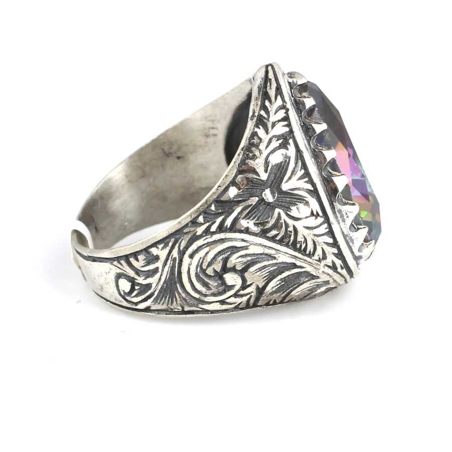 Notify me when its in stock 925 ayar gümüştür. Gümüş erkek yüzüğün üst kısmı 2,3 cm'ye 1,8 cm boyutlarındadır. Yüzüğün taş yuvası 1,8 cm'ye 1,5 cm boyutlarındadır. Resimdeki yüzüğün ölçüsü 21 ölçüdür. Yüzük mistik topaz taşlıdır. Gramı: 17,48 gr