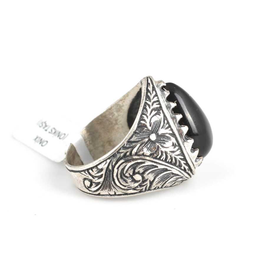 Notify me when its in stock 925 ayar gümüştür. Gümüş erkek yüzüğün üst kısmı 2,3 cm'ye 1,8 cm boyutlarındadır. Yüzüğün taş yuvası 1,8 cm'ye 1,5 cm boyutlarındadır. Resimdeki yüzüğün ölçüsü 21 ölçüdür. Yüzük oniks taşlıdır. Gramı: 15,23 gr