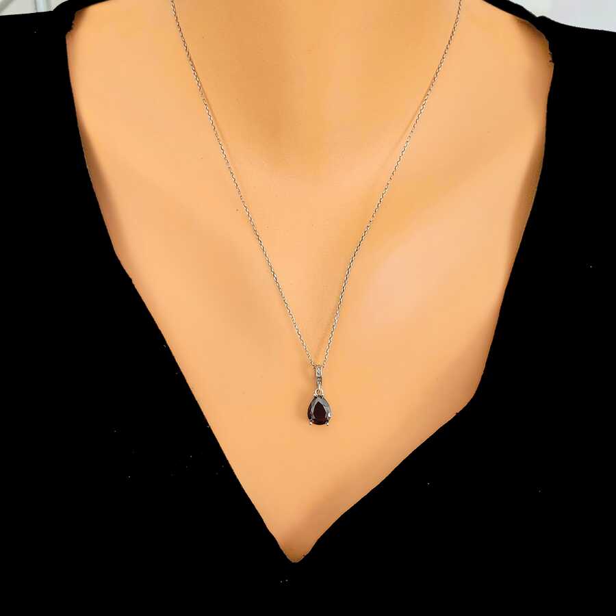 Gümüş kolye 925 ayar gümüşten yapılmıştır. Damla model kolye 0,8 cm'ye 1,0 cm boyutlarındadır. Gümüş kolye 45 cm uzunluğundadır. Kolye oniks renk zirkon taşlıdır. Gümüş renklidir. Ağırlığı 3 gramdır.