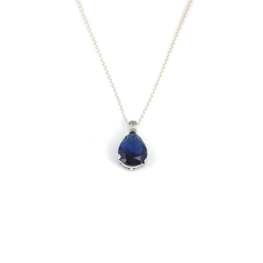 Notify me when its in stockGümüş kolye 925 ayar gümüşten yapılmıştır. Zarif gümüş kolye tepeliği dahil 2 cm'ye 1 cm boyutlarındadır. Zirkon taşı 1,4 cm'ye 1,0 cm boyutlarındadır. Gümüş kolye 45 cm uzunluğundadır. Kolye safir renk zirkon taşlıdır. Ağırlığı 3,09 gramdır.