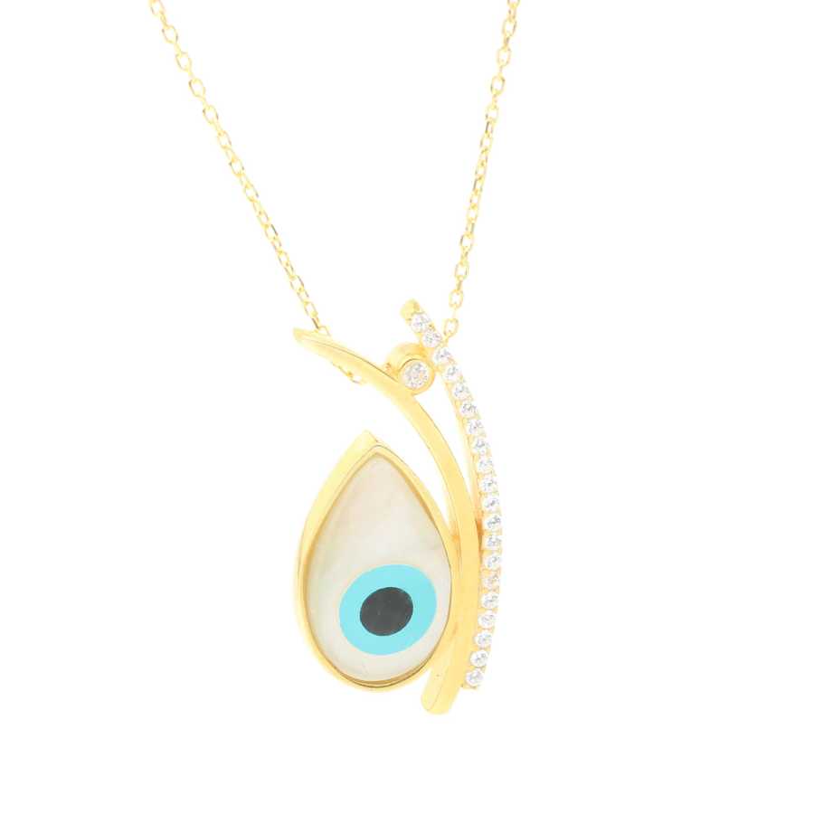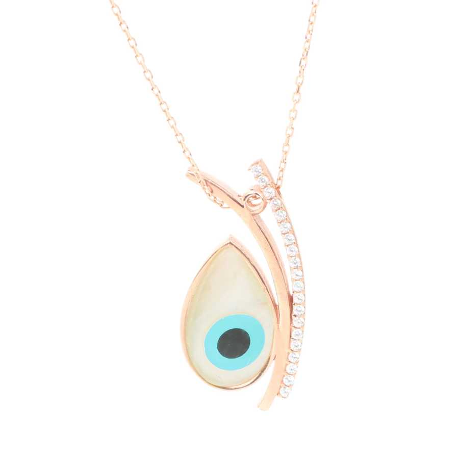 925 Ayar Gümüş Damla Sedef Taşlı Göz Kolye