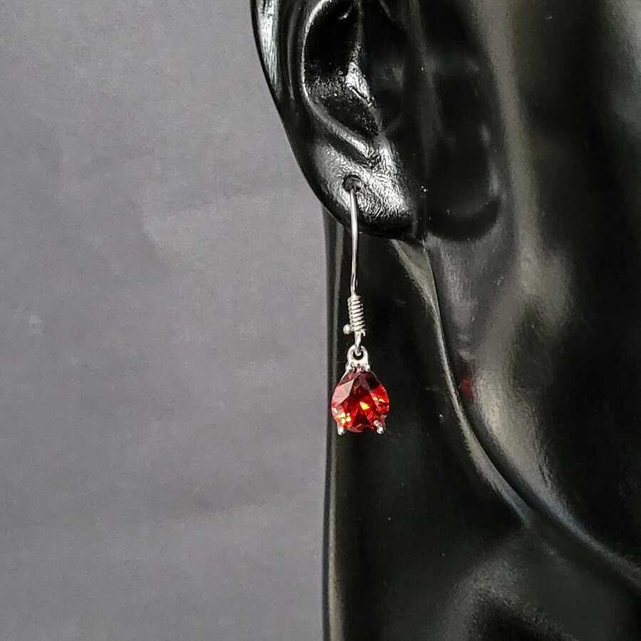 Gümüş küpe 925 ayar gümüşten yapılmıştır. Damla şeklindeki sallantılı küpe 0,8 cm'ye 1,0 cm boyutlarındadır. Küpe yakut renk zirkon taşlıdır. Ürün gümüş rengidir. Diğer renkler için bizimle iletişime geçebilirsiniz. Ağırlığı 3,7 gramdır.