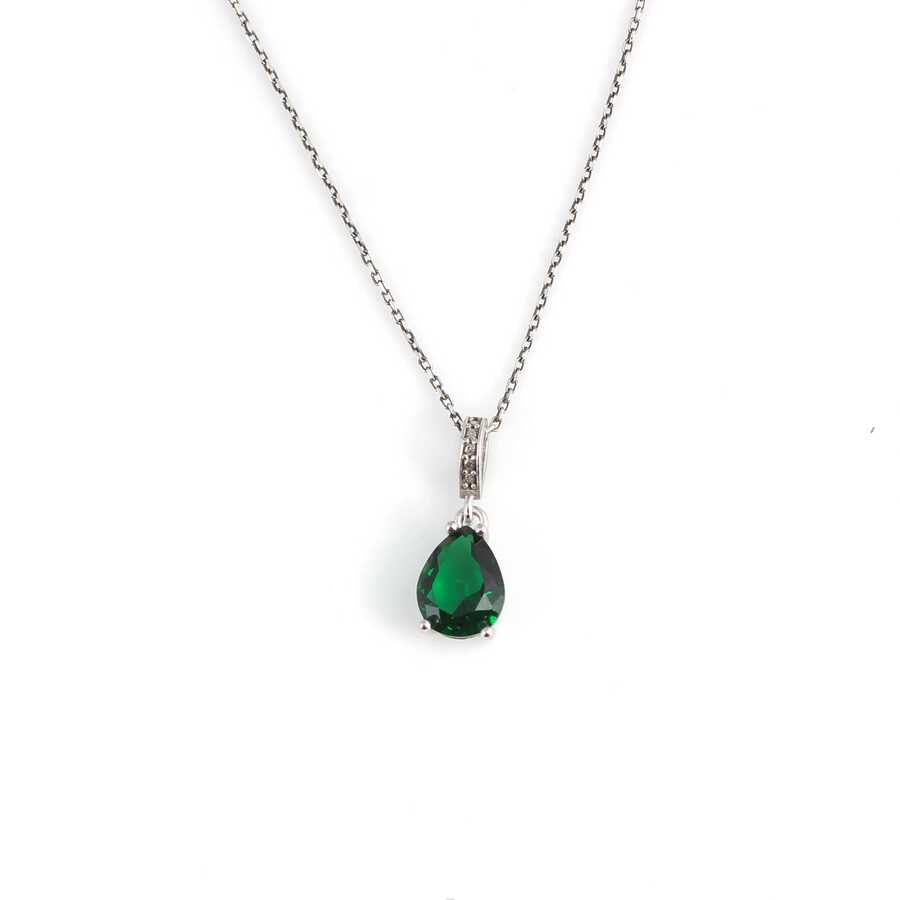 925 Ayar Gümüş Damla Sentetik Zümrüt Taşlı Kolye