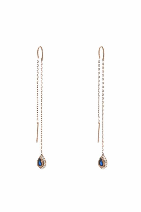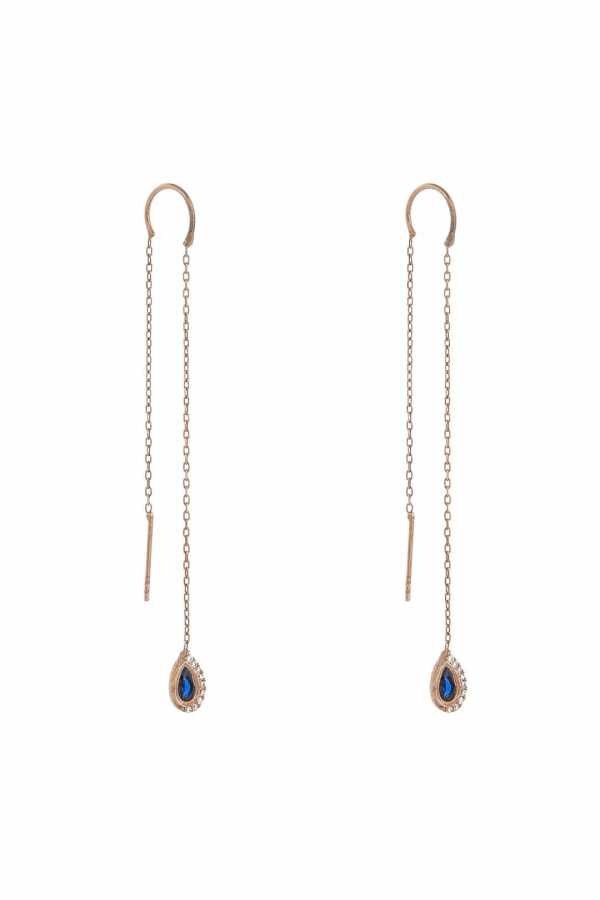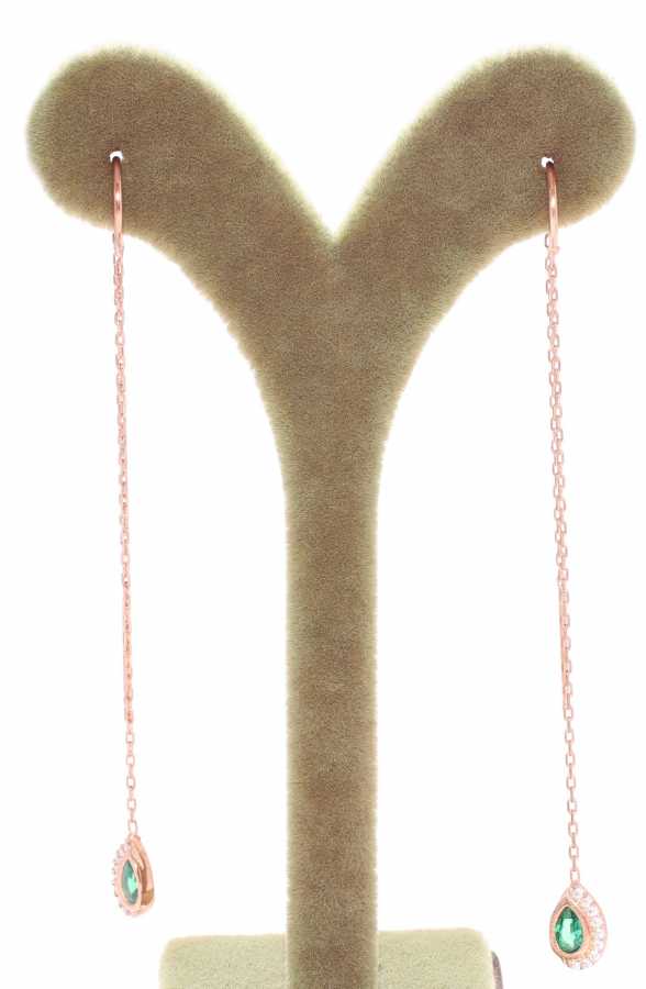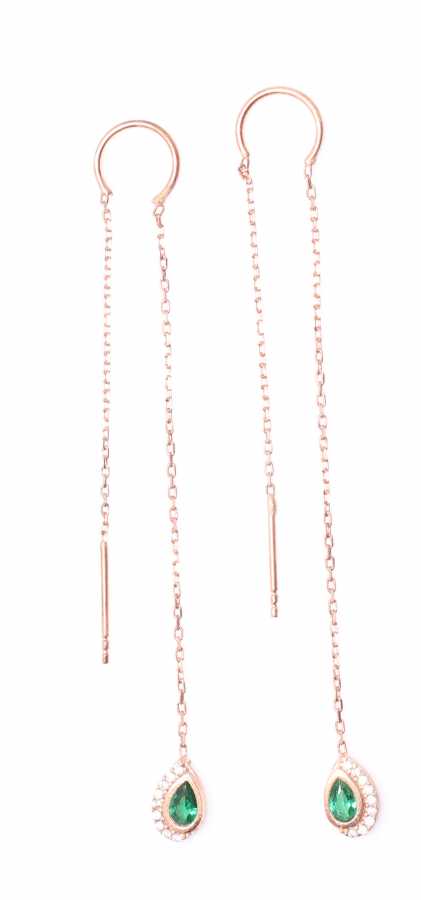 925 Ayar Rose Gümüş Yeşil Taşlı Zincir Küpe