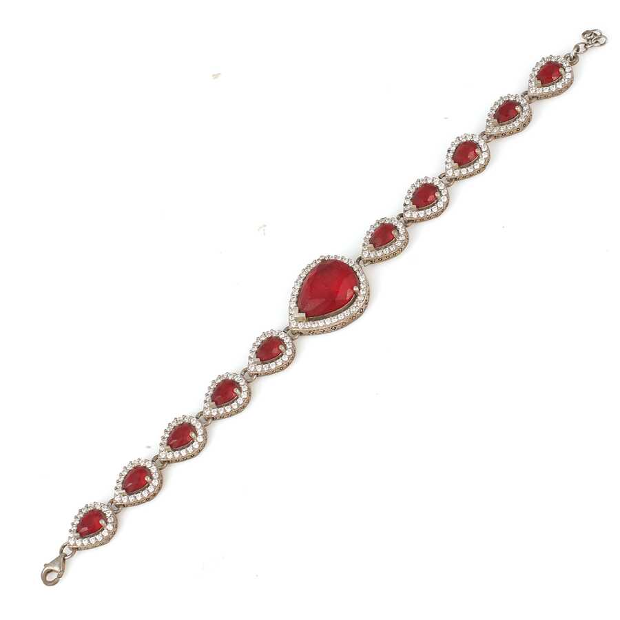 Bileklik 925 ayar gümüşten imal edilmiştir. Damla anturaj şeklindeki bileklik 18,5 cm uzunluğundadır. Damla anturajlardan büyük olanı 1,6 cm ve küçük olanları da 0,9 cm boyutundadır. Bileklik sentetik yakut ve zirkon taşlıdır. Gümüş bileklik 17,25 gram ağırlığındadır.