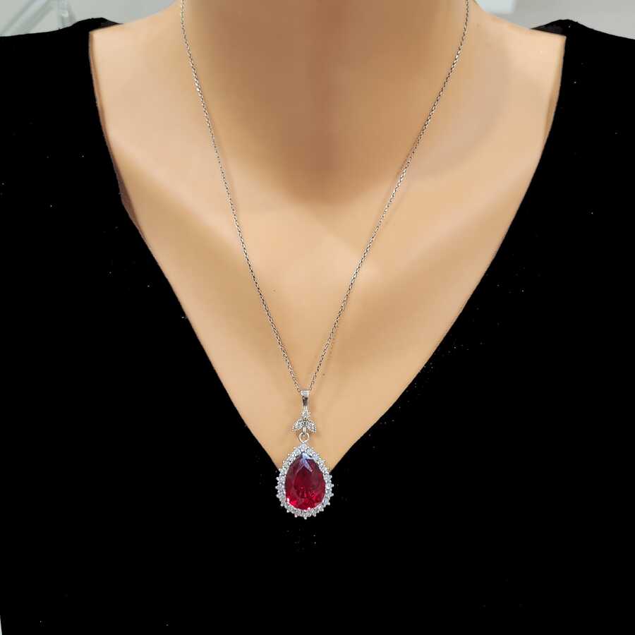 925 Ayar Gümüş Damla Yakut Taşlı Anturaj Kolye