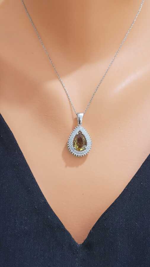 925 Ayar Gümüş Damla Zultanit Taşlı Kolye