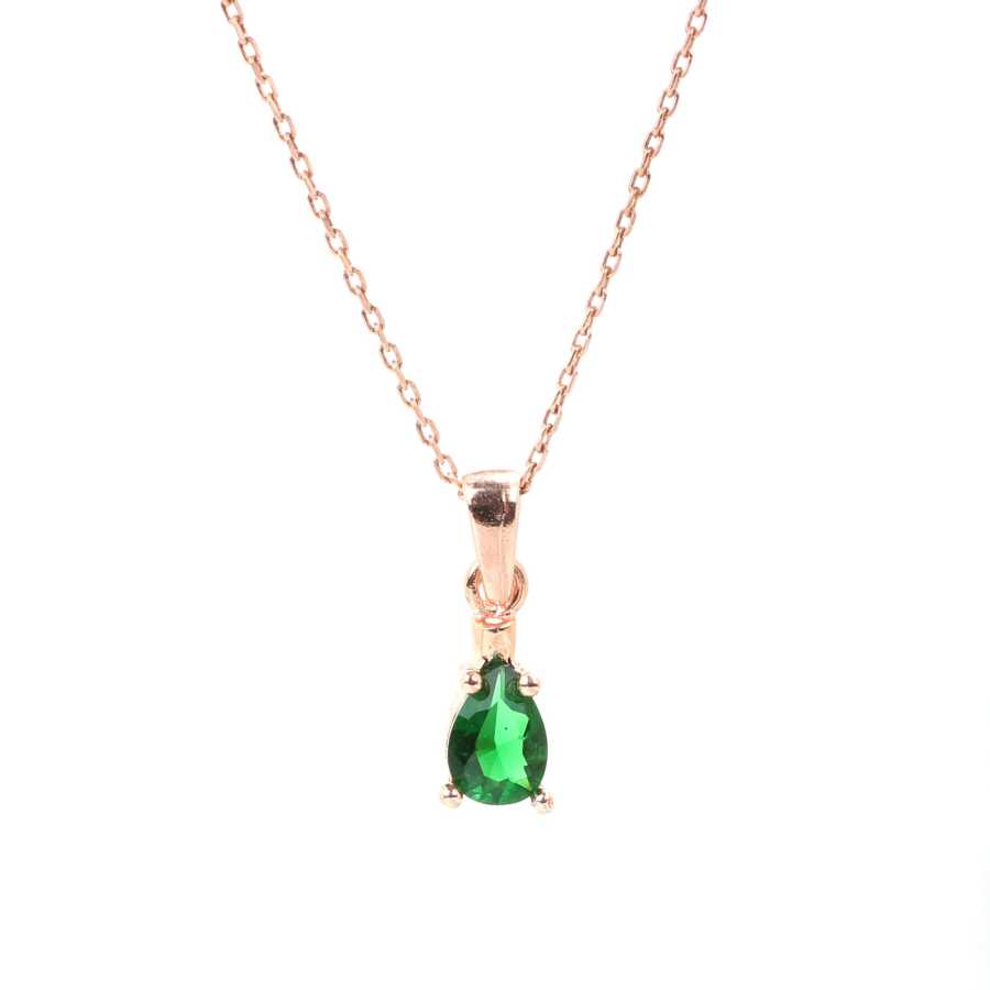 925 Ayar Gümüş Damla Zümrüt Kolye