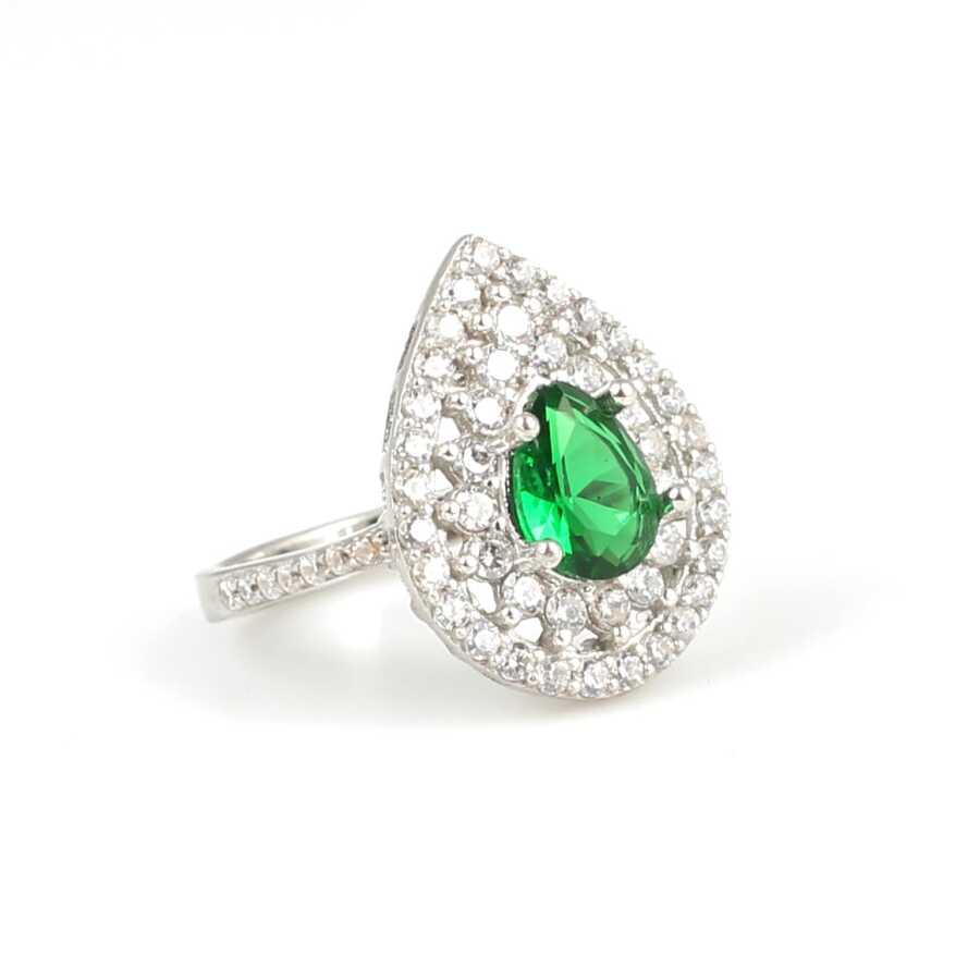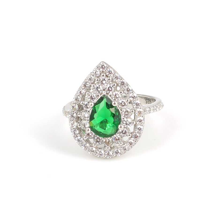 Gelince Haber Ver Gümüş yüzük 925 ayar gümüşten yapılmıştır. Damla çift sıra anturaj model yüzüğün üst kısmı 1,9 cm'ye 1,5 cm boyutlarındadır. Zümrüt renk taşı 0,8 cm'ye 0,6 cm boyutlarındadır. Küpe beyaz ve zümrüt renk zirkon taşlıdır. Yüzük 12 ölçüdür. Tüm ölçüler yapılabilmektedir. Ağırlığı 3,63 gramdır.