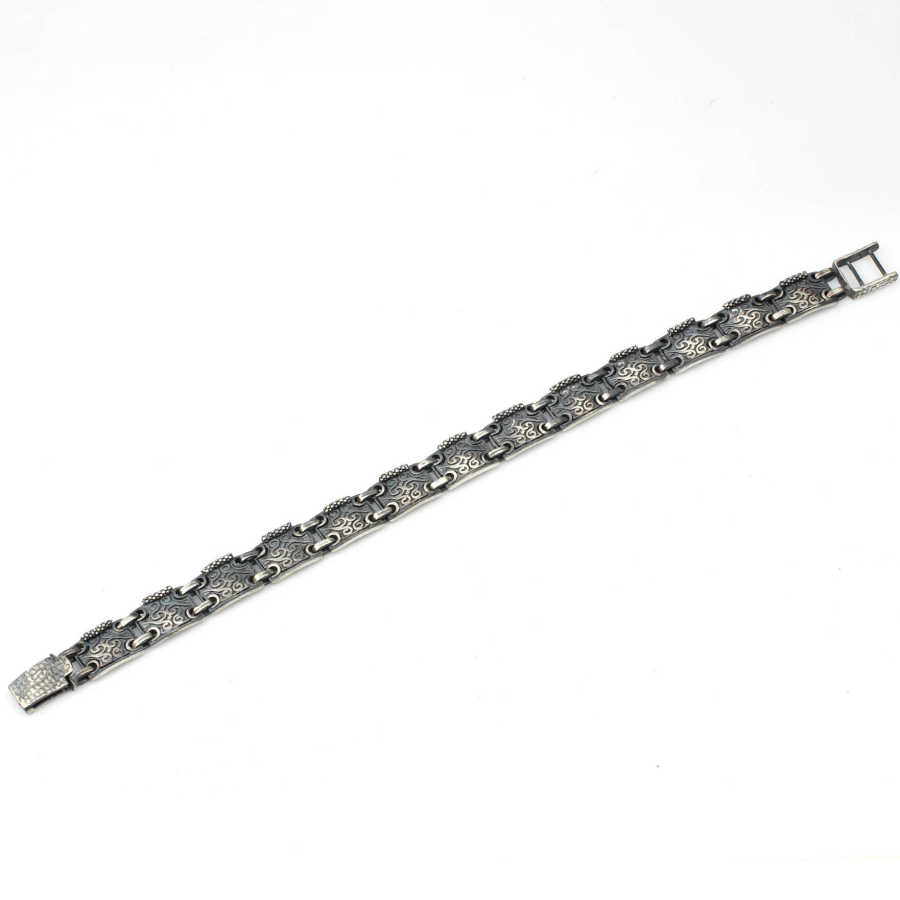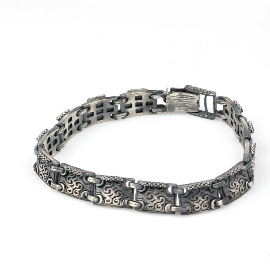 925 Ayar Gümüş Desenli Bileklik, Siyah