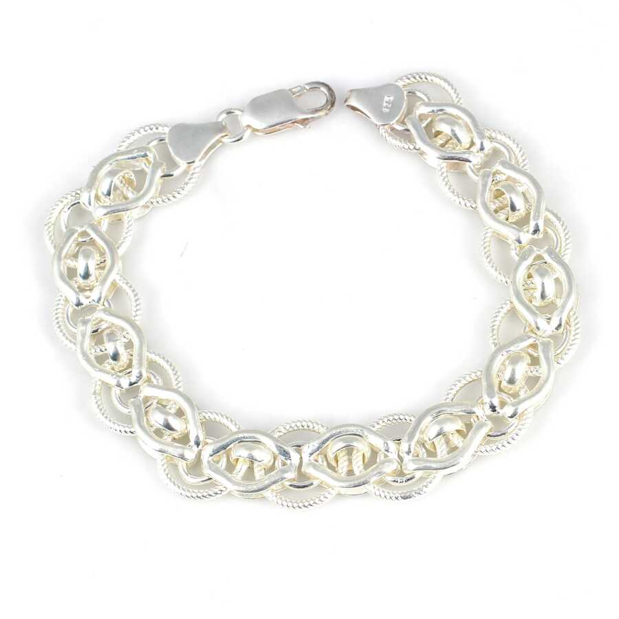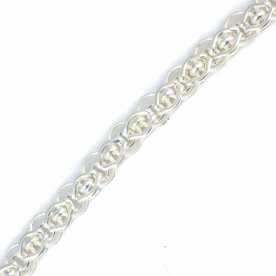 Gelince Haber VerBileklik 925 ayar gümüşten imal edilmiştir. Zincir bileklik 20 cm uzunluğundadır. Bileklik 1,3 cm genişliğinde ve 0,6 cm kalınlığındadır. Gümüş bileklik setina desenlidir. Bileklik taşsızdır. Zincir bileklik gümüş renk rodajlıdır. Ağırlığı 25,18 gramdır.