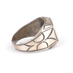 Yüzük 925 ayar gümüşten üretilmiştir. Gümüş yüzük üzerine lazer ile desen çizilmiştir. Tüm ölçüler yapılabilmektedir. Yüzük taşsızdır. Ağırlığı 9 gramdır.