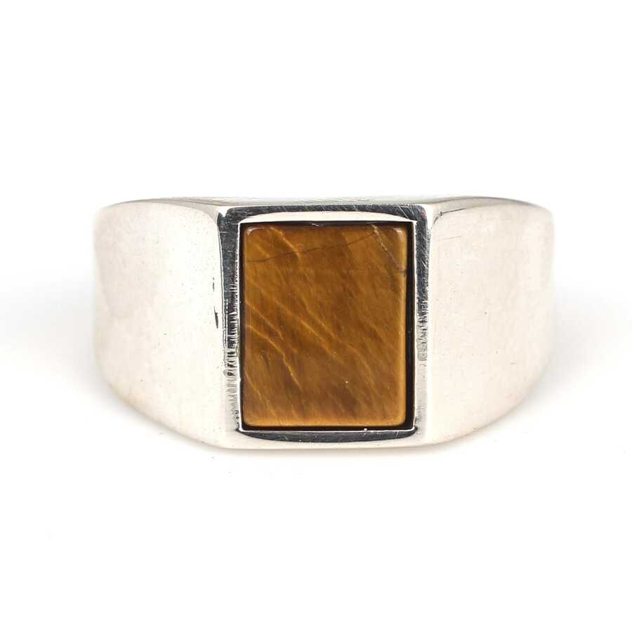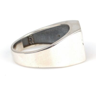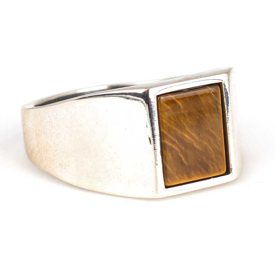 925 Ayar Gümüş Kaplan Gözü Dikdörtgen Taşlı Erkek Yüzüğü