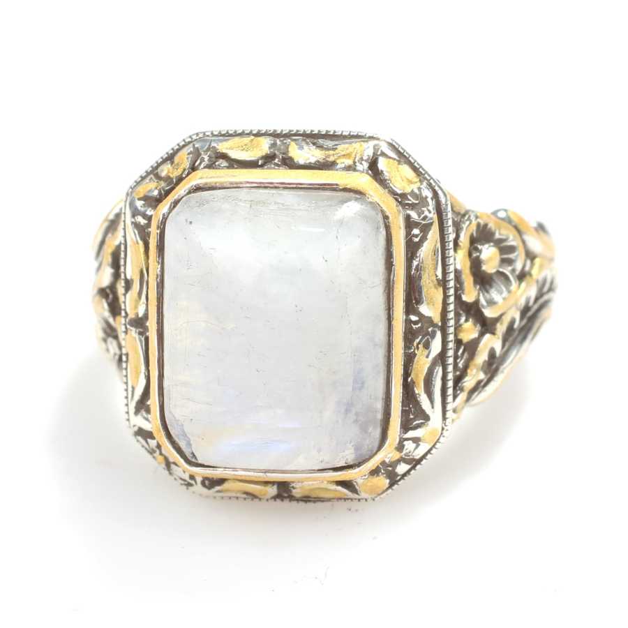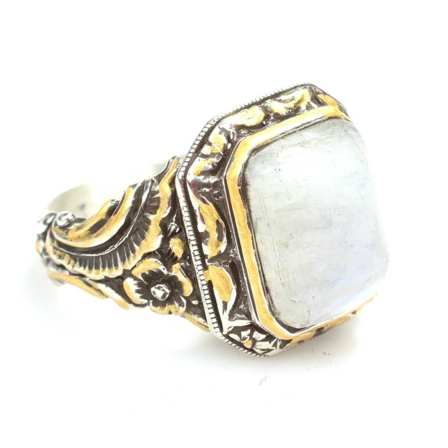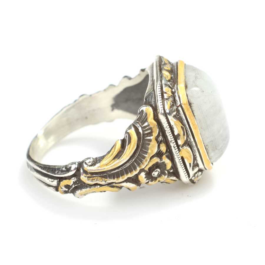 Yüzük 925 ayar gümüşten üretilmiştir. Yüzüğün üzerinde el kalemi atılarak tasarlanmıştır. Taşlı yüzük 1,9 cm'ye 1,7 cm boyutlarındadır. Resimdeki yüzük 24 ölçüdür, ancak tüm ölçüler özel olarak yapılabilmektedir. Yüzük aytaşı renk taşlıdır. Ağırlığı 11,62 gramdır.