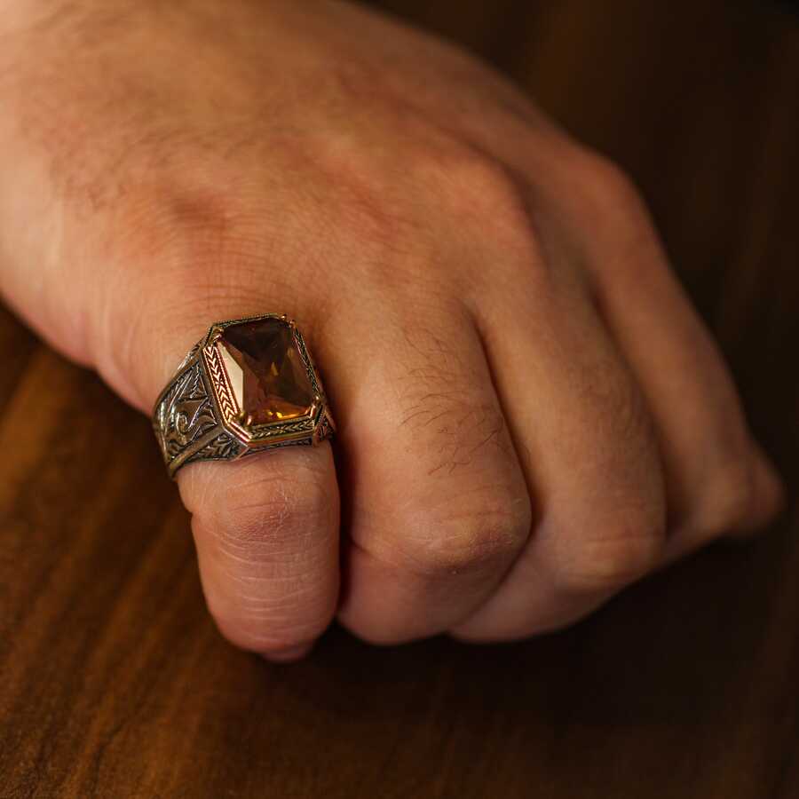 925 Ayar Gümüş Dikdörtgen Bronz Taş Yuvalı Zultanit Taşlı Erkek Yüzüğü