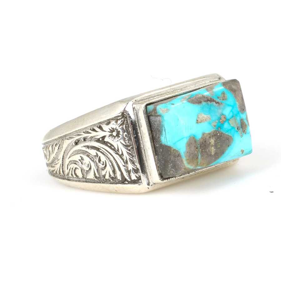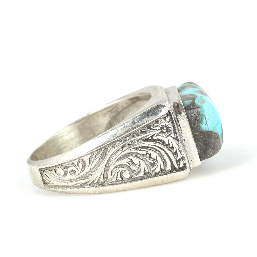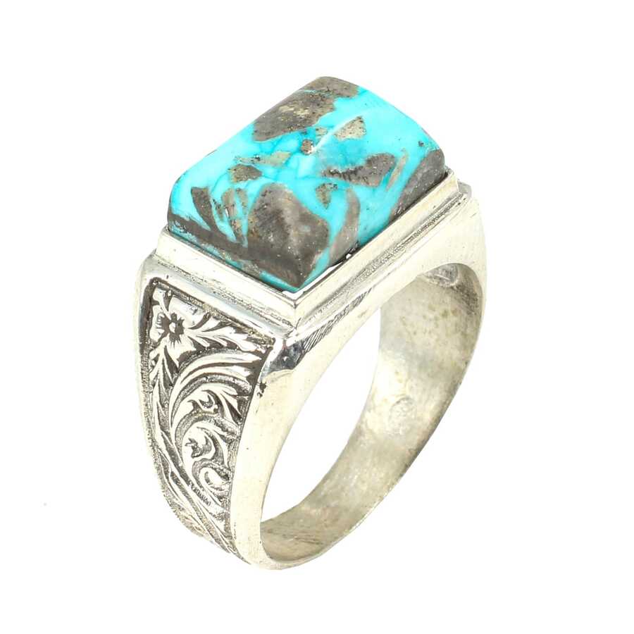 Yüzük 925 ayar gümüşten üretilmiştir. Taşlı yüzük 1,5 cm'ye 1,0 cm boyutlarındadır. Resimdeki yüzük 20 ölçüdür, ancak tüm ölçüler özel olarak yapılabilmektedir. Yüzük gerçek turkuaz taşlıdır. Ağırlığı 10,8 gramdır.