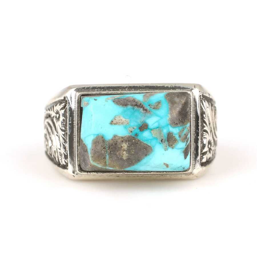 925 Ayar Gümüş Dikdörtgen Damarlı Turkuaz Taşlı Erkek Yüzük