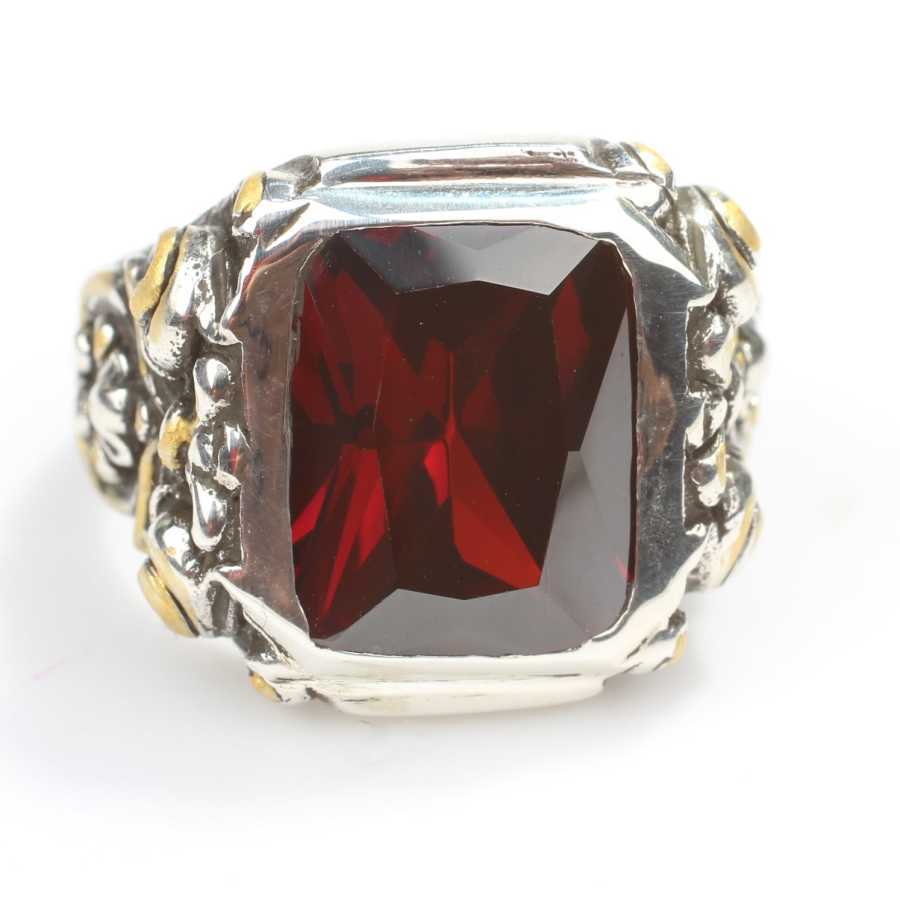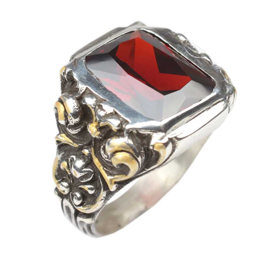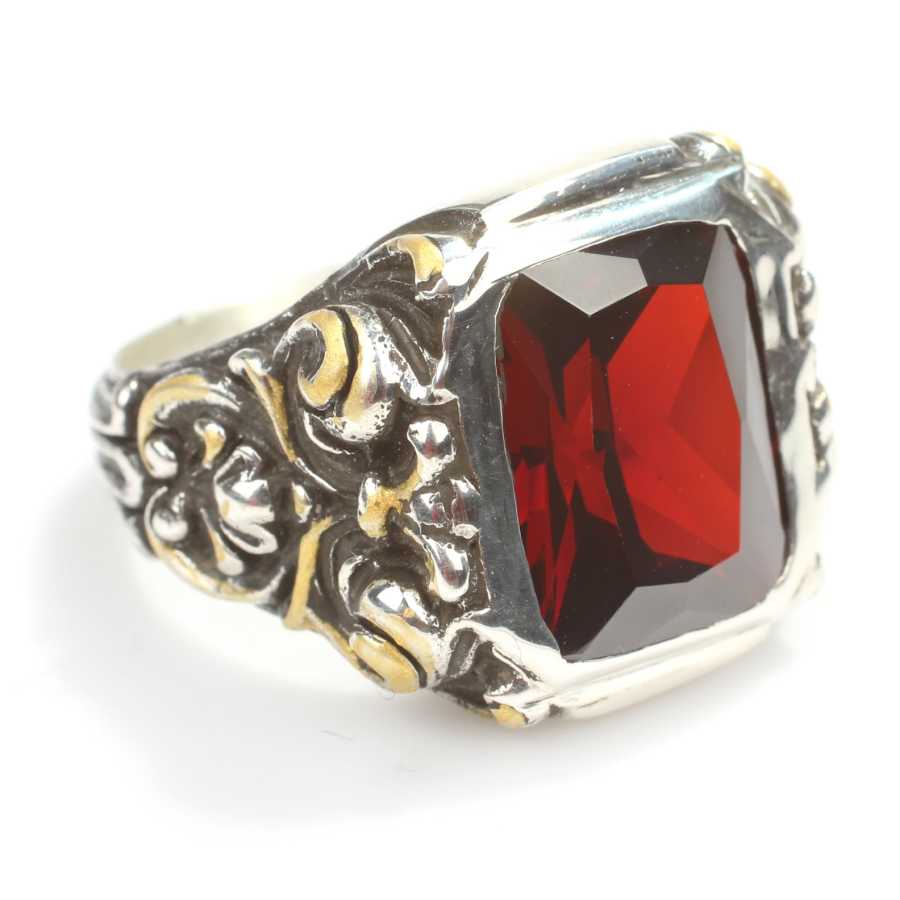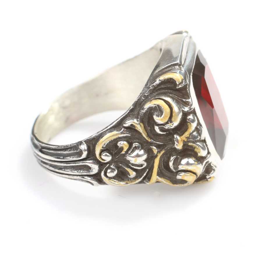 Yüzük 925 ayar gümüşten üretilmiştir. Yüzüğün üzerinde el kalemi atılarak tasarlanmıştır. Taşlı yüzük 2,0 cm'ye 1,8 cm boyutlarındadır. Resimdeki yüzük 22 ölçüdür, ancak tüm ölçüler özel olarak yapılabilmektedir. Yüzük sentetik yakut taşlıdır. Ağırlığı 16,08 gramdır.