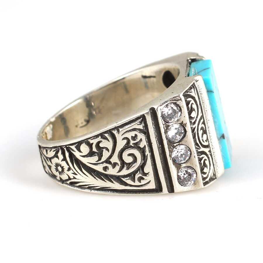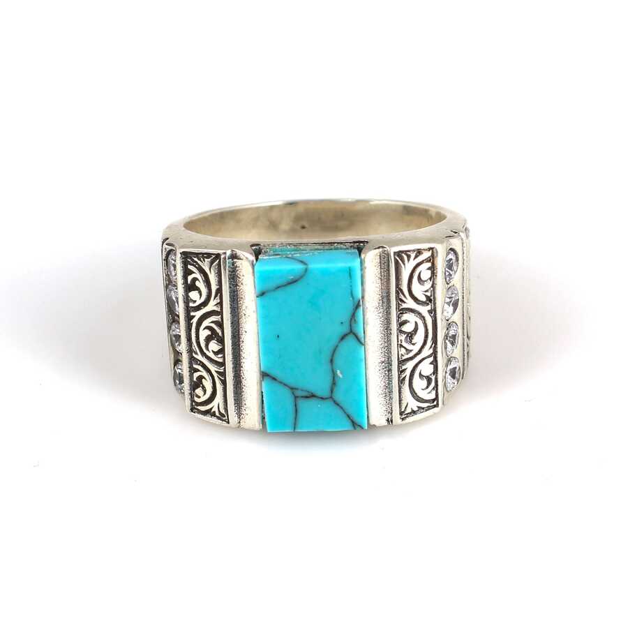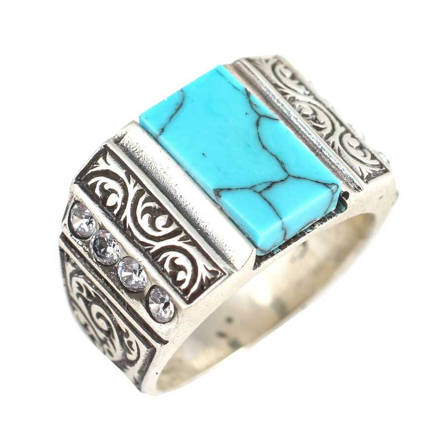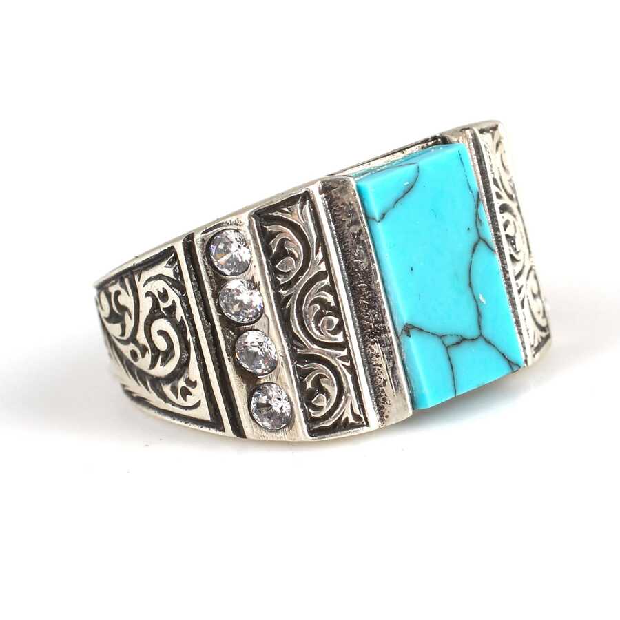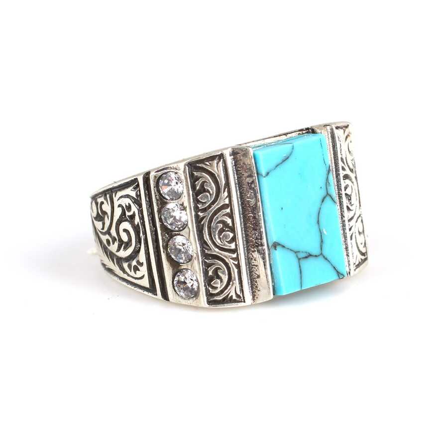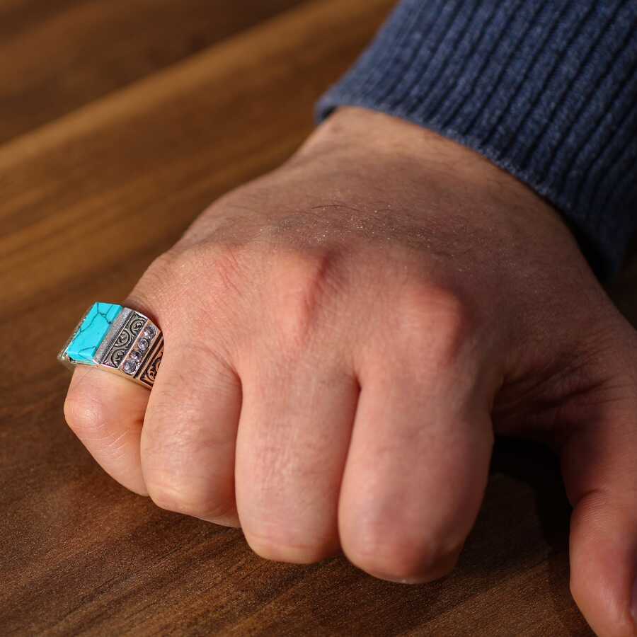 925 Ayar Gümüş Dikdörtgen Firuze Gerçek Taşlı Erkek Yüzük