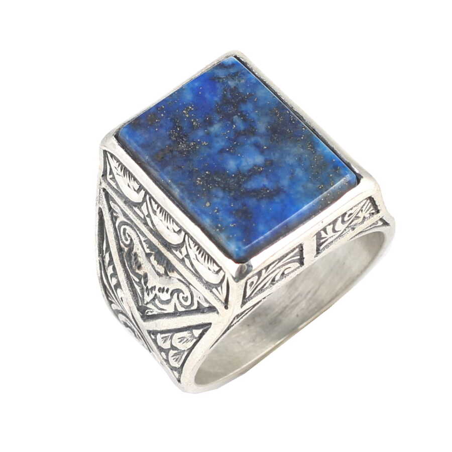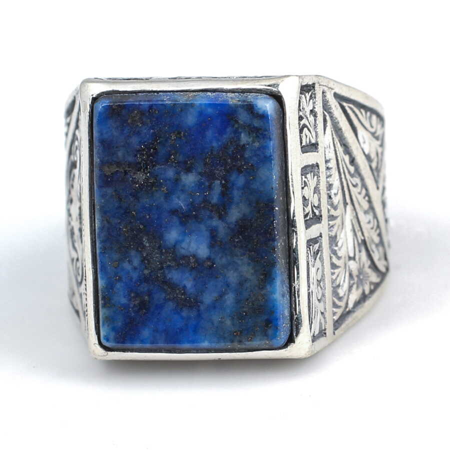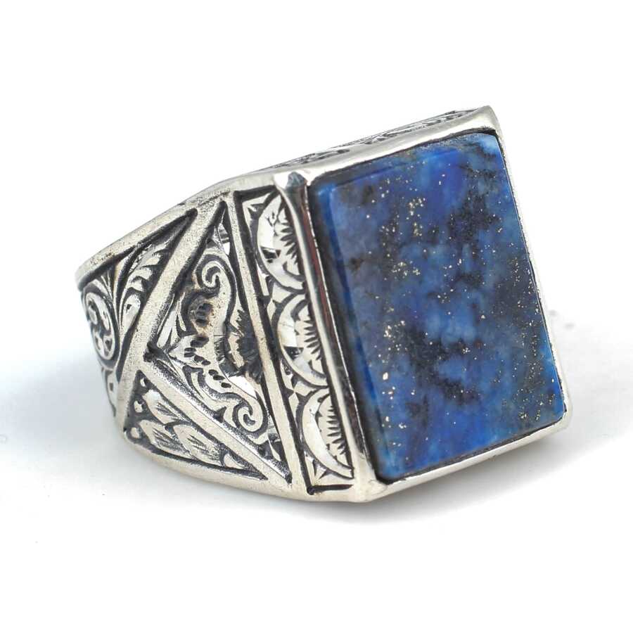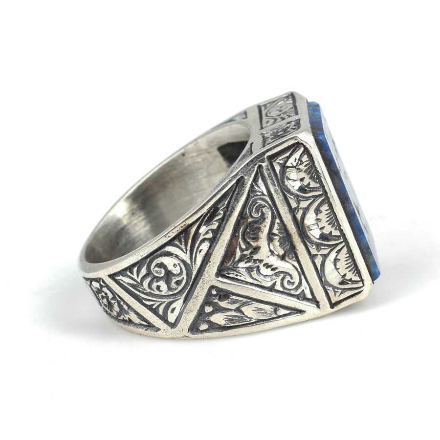 Yüzük 925 ayar gümüşten üretilmiştir. yüzüğün üst kısmı 21*17 cm boyutlarındadır. Resimdeki yüzük 30 ölçüdür, ancak tüm ölçüler özel olarak yapılabilmektedir. Yüzük gerçek lapis taşlıdır. Ağırlığı 23,41 gramdır.
