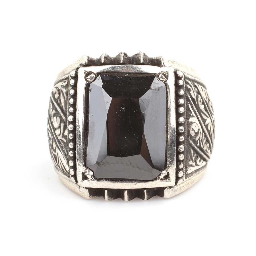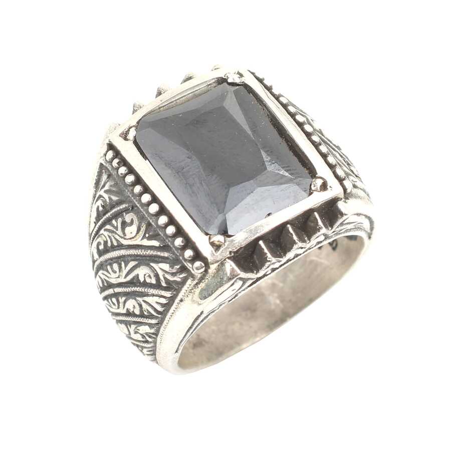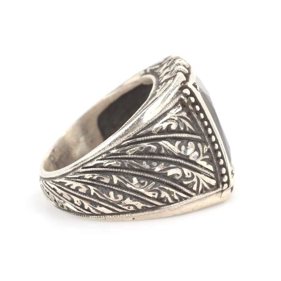 Yüzük 925 ayar gümüşten üretilmiştir. Yüzüğün üzerinde el kalemi atılarak tasarlanmıştır. Taşlı yüzük 1,7 cm'ye 1,3 cm boyutlarındadır. Resimdeki yüzük 24 ölçüdür, ancak tüm ölçüler özel olarak yapılabilmektedir. Yüzük hematit taşlıdır. Ağırlığı 22,56 gramdır.