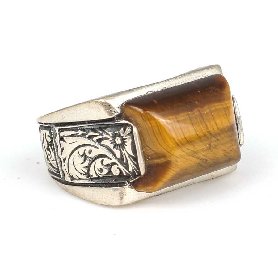 WGEYZ1714 - 925 Ayar Gümüş Dikdörtgen Kaplan Gözü Erkek Yüzüğü