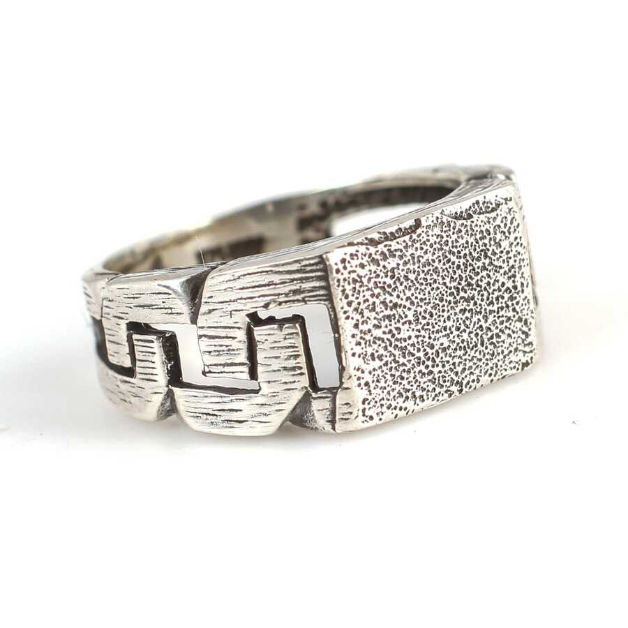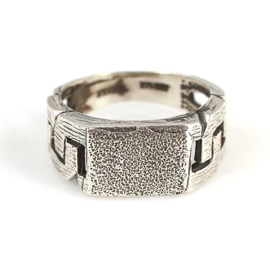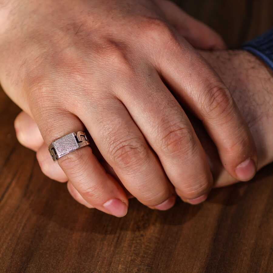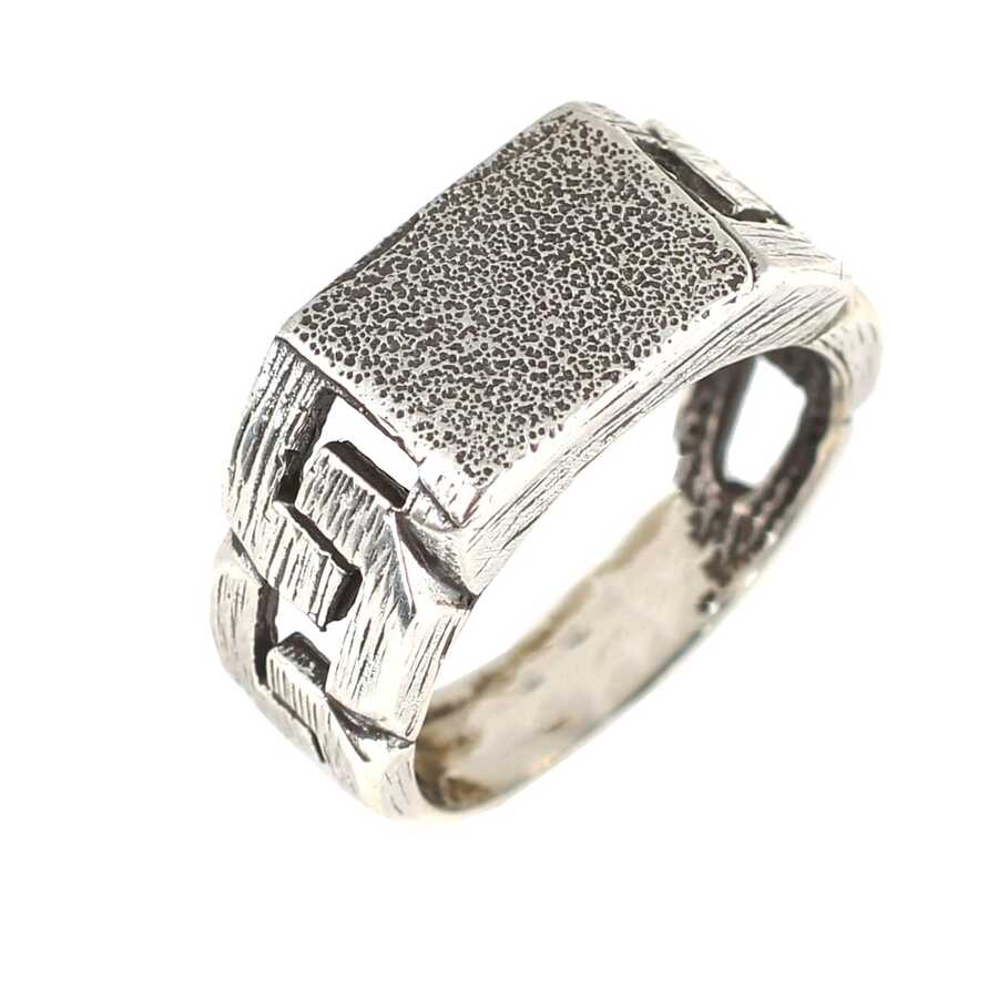 925 Ayar Gümüş Dikdörtgen Kasalı Taşsız Zincir Kollu Erkek Yüzük