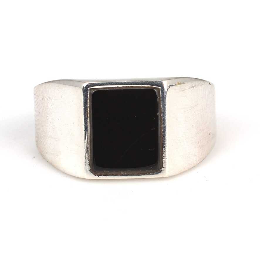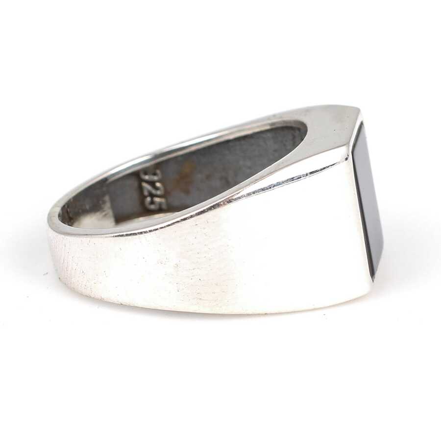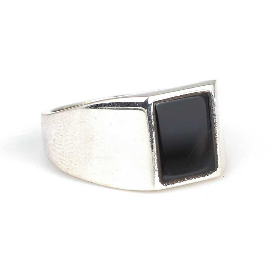 925 Ayar Gümüş Oniks Dikdörtgen Taşlı Erkek Yüzüğü