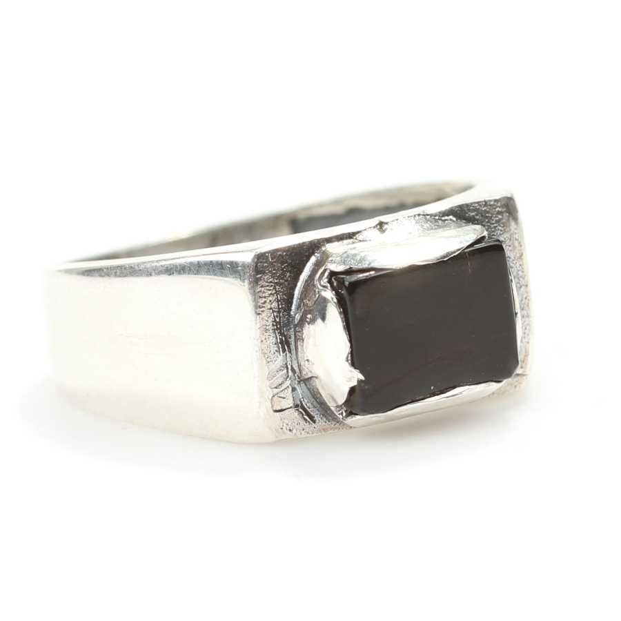 Yüzük 925 ayar gümüşten üretilmiştir. Taşlı yüzük 0,9 cm'ye 0,7 cm boyutlarındadır. Resimdeki yüzük 17 ölçüdür, ancak tüm ölçüler özel olarak yapılabilmektedir. Yüzük oniks renk taşlıdır. Ağırlığı 3,98 gramdır.