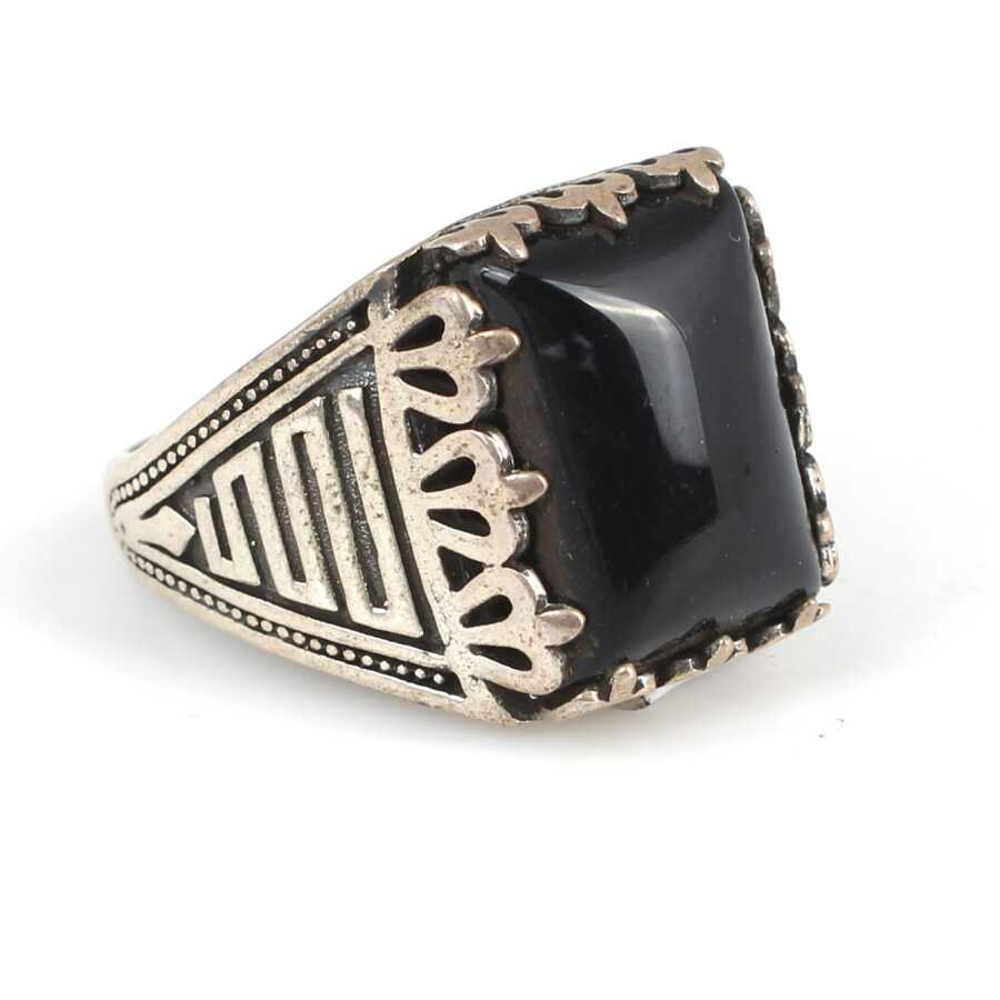925 Ayar Gümüş Dikdörtgen Onix taşlı kolları işlemeli yüzük 22 ölçü Gramı: 8,57