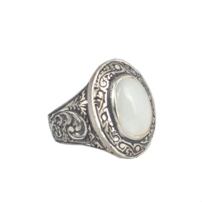 925 Ayar Gümüş Dikdörtgen Oval Sedef Taşlı Kalemli Erkek Yüzük