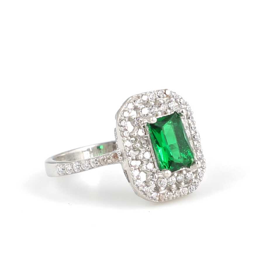 Notify me when its in stock Gümüş yüzük 925 ayar gümüşten yapılmıştır. Dikdörtgen çift sıra anturaj model yüzüğün üst kısmı 1,4 cm'ye 1,2 cm boyutlarındadır. Zümrüt renk taşı 0,7 cm'ye 0,5 cm boyutlarındadır. Küpe beyaz ve zümrüt renk zirkon taşlıdır. Yüzük 13 ölçüdür. Tüm ölçüler yapılabilmektedir. Ağırlığı 2,77 gramdır.