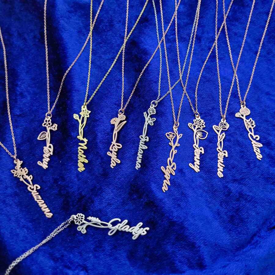 925 Ayar Gümüş Doğum Çiçeği İsim Kolye 925 ayar gümüşten üretilmiştir. Tüm isimler çalışılmaktadır. Çiçekleri isterseniz doğum aynıza göre veya tercihinize göre seçebilirsiniz. Kolye zinciri 45 cm uzunluğundadır. Kolye 1 cm enindedir. Kolye uzunluğu isme göre ve çiçeğe göre değişkenlik göstermektedir. Ağırlığı 2 gramdır.