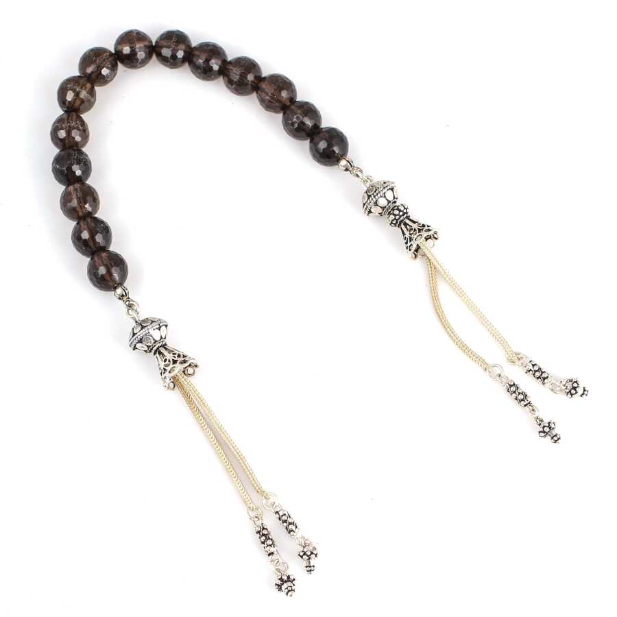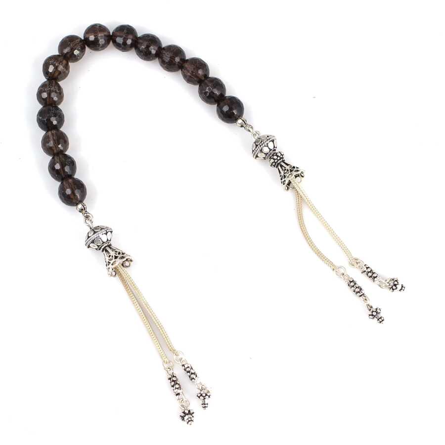 925 Ayar Gümüş Dumanlı Kuvars Taşlı Zaza Tesbih