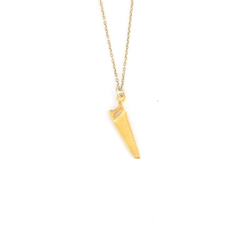 Gümüş kolye 925 ayar gümüşten yapılmıştır. Gümüş kolye 45 cm uzunluğundadır. El testeresi şeklinde kolye 2,3 cm'ye 0,7 cm boyutlarındadır. Kolye taşsızdır. Charm Kolye 2,38 gramdır.