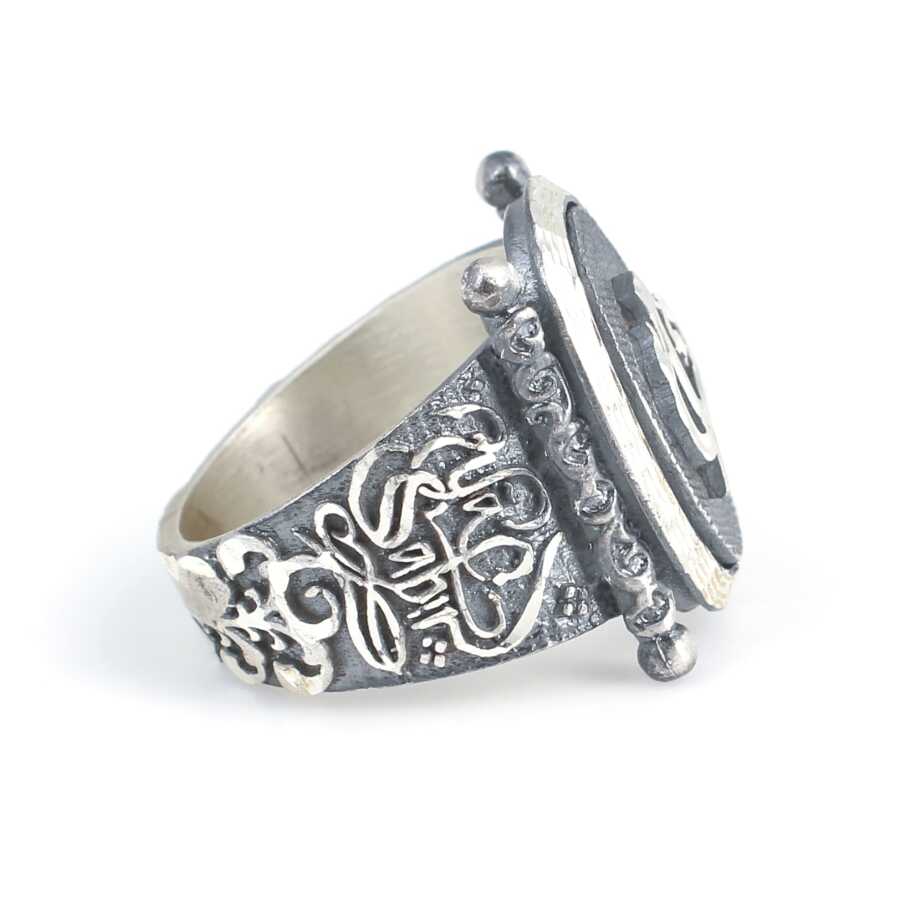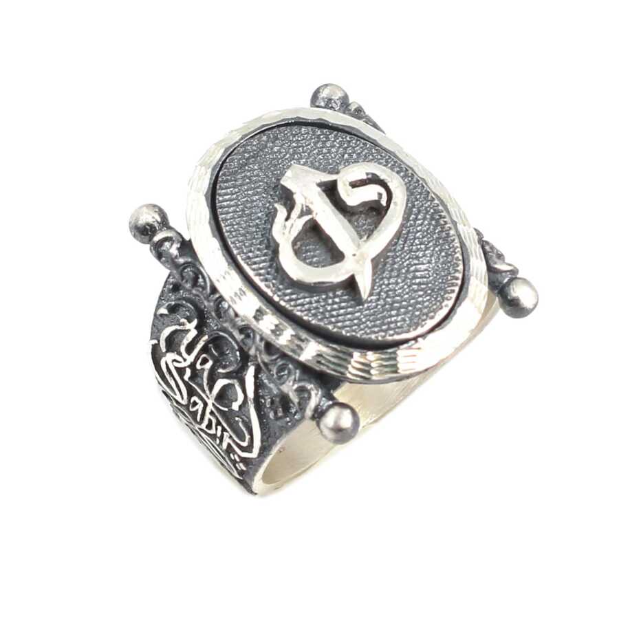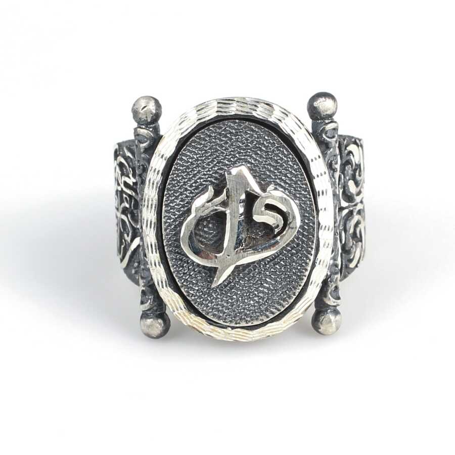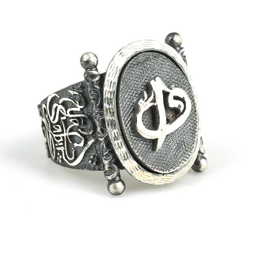 925 Ayar Gümüş Elif Vav Harfli Elişi Kalemli Erkek Yüzük