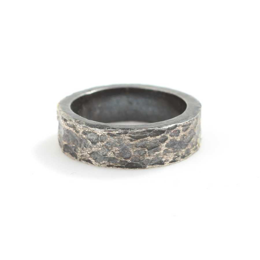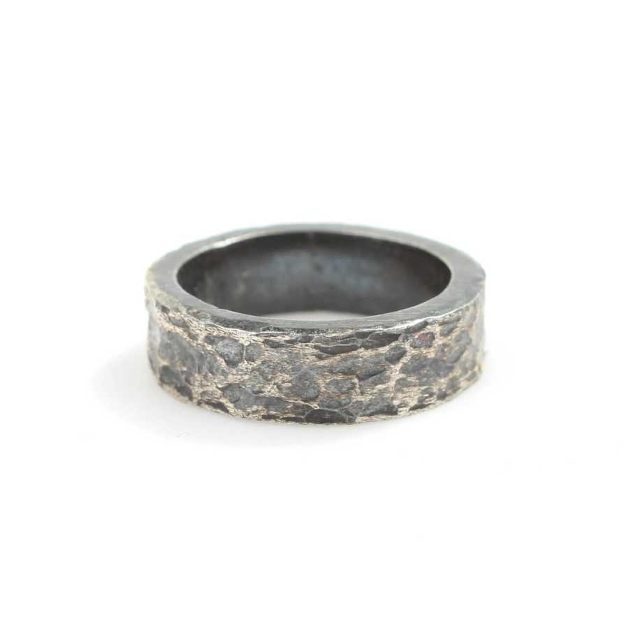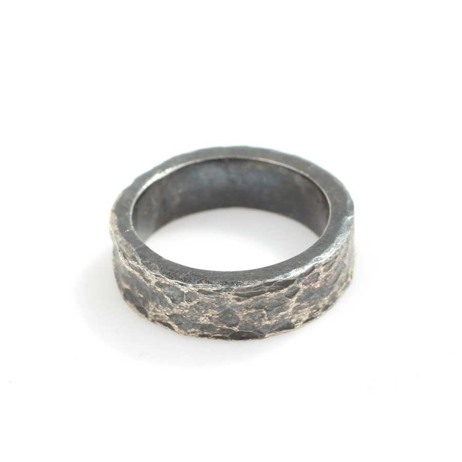 Yüzük 925 ayar gümüşten üretilmiştir. Gümüş yüzük elde dövülerek tamamen elişi olarak tasarlanmıştır. Ustalık mahareti özel tasarım bir yüzüktür. Gümüş üzerine siyah renk karartma yapılarak eskitme yapılmıştır. Resimdeki yüzük 8 ölçüdür, ancak tüm ölçüler yapılabilmektedir. Antik gümüş yüzük taşsızdır. Ağırlığı 5,7 gramdır.